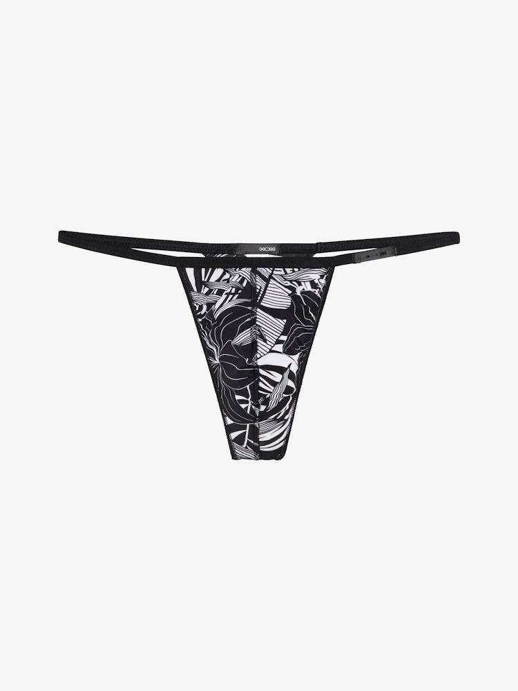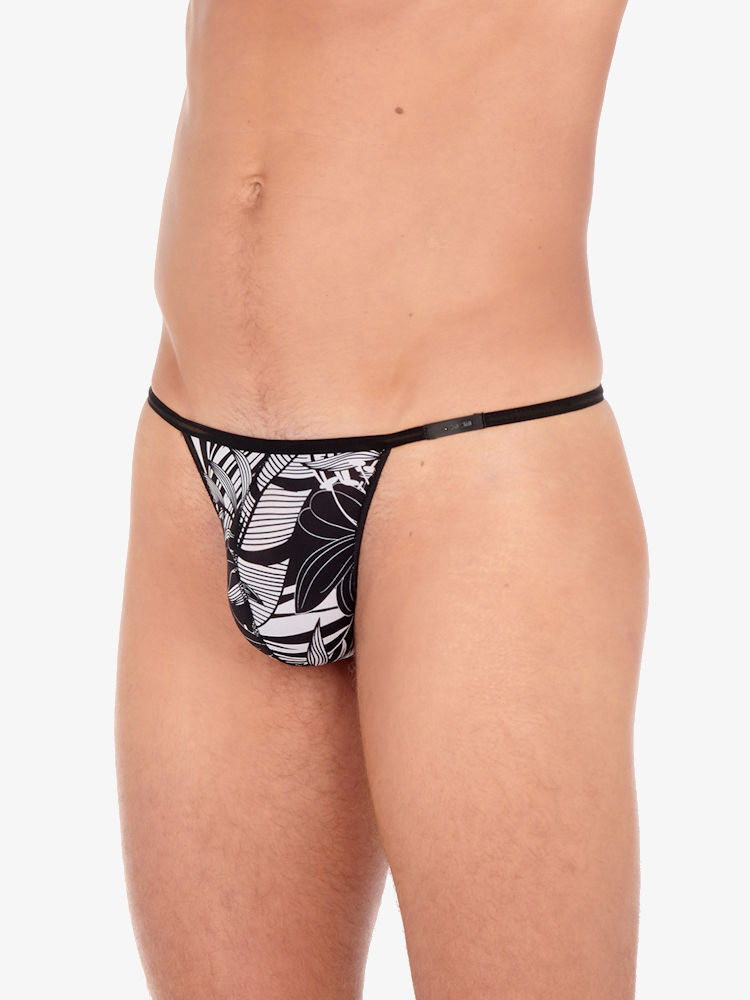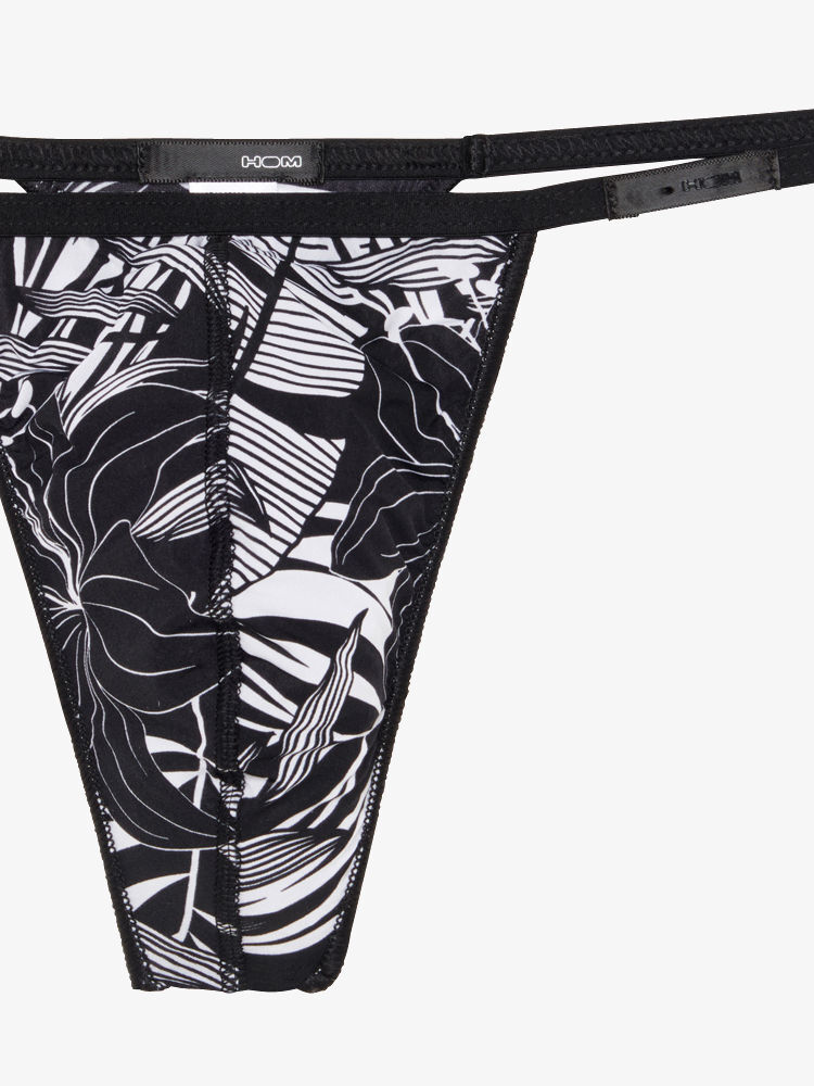 HOM Temptation G-String Bendor 405715 string met abstract zwart-wit bladerendessin