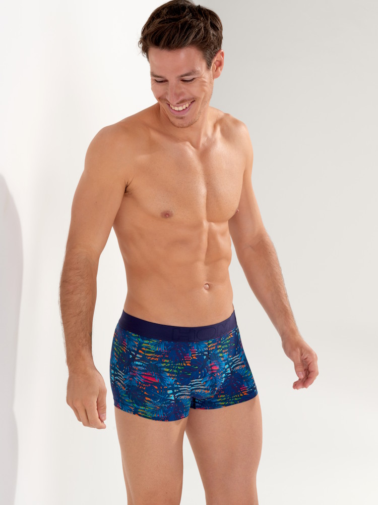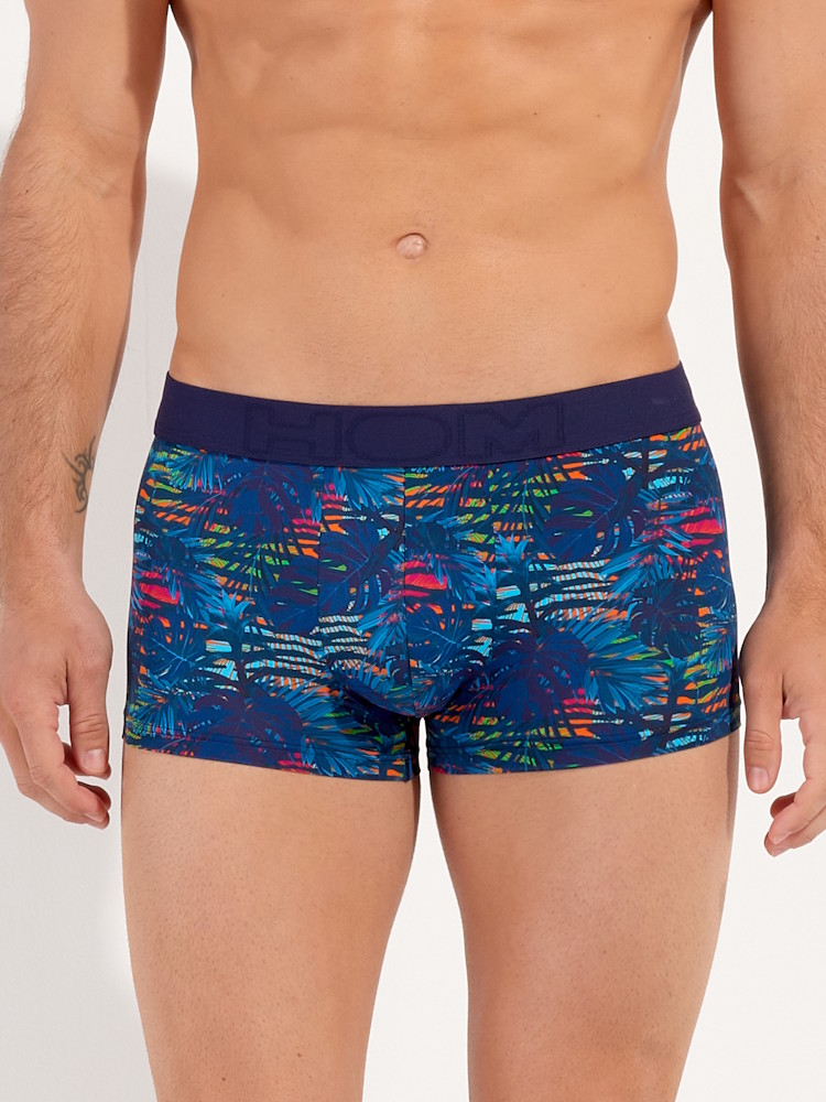 Voeg kleur, stijl en comfort toe aan je garderobe met de Hom Trunk Dreamland 402955 Navy Blue Print; een moderne boxershort met strakke vormgeving, gemaakt van soepele microfiber met kleurrijke tropische print.