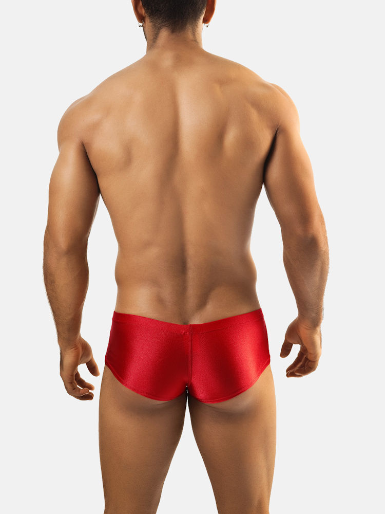 Joe Snyder Cheek Boxer JS13 miniboxer met pouch van glimmende rode Lycra