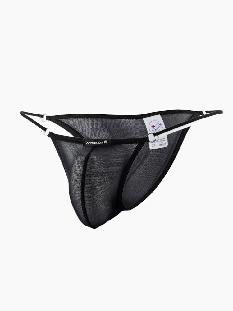 Gemaakt van een zachte fijne zwarte stretch netstof en bij de heupen voorzien van dubbele smalle bandjes. Smal gesneden bij het kruis en klein bij de billen. Speciaal ontworpen voor de man die het prettig vindt weinig onder zijn kleding te dragen, maar wel perfecte ondersteuning wenst. Ben jij op zoek naar kleine slips? Bekijk dan snek deze Joe Snyder Kinny bikini, als je durft…