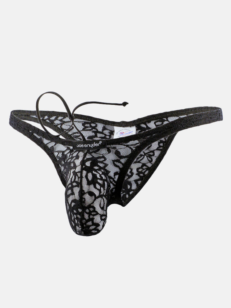 Met deze stoere en gewaagde serie underwear creëer je eenvoudig een extra grote bulge. Aan de binnenzijde van de nauwsluitende pouch is een zacht elastisch bandje/ring bevestigd die om het scrotum kan worden geplaatst en naar wens in grootte kan worden aangepast. Op deze manier geeft de pouch een nog beter liftend effect en een mooier en groter profiel. Eenvoudig zelf naar wens aan te passen. Strak of los? De keuze is aan jou! De Joe Snyder Maxi Bulge Capri is laag gesneden bij de buik en voorzien van twee smalle taillebandjes. De extra smalle achterkant met gestikte naad laat jouw billen nóg beter tot hun recht komen! Minimale constructie met maximale ondersteuning en ultiem draagcomfort. Laat zien wat je in huis hebt met deze capri slip uit de Joe Snyder Maxi Bulge collectie, uitgevoerd in spannende doorschijnende zwarte kant.