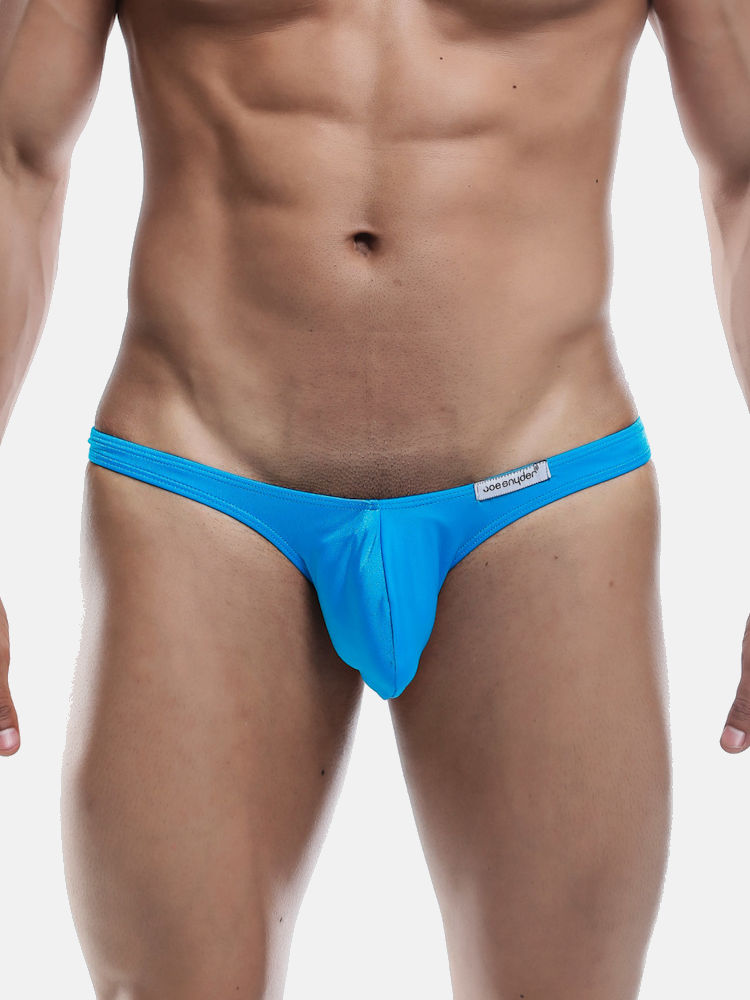 Met deze stoere en gewaagde Joe Snyder thong creëer je eenvoudig een extra grote bulge. Aan de binnenzijde van de nauwsluitende pouch is een zacht elastisch bandje/ring bevestigd die om het scrotum kan worden geplaatst en naar wens in grootte kan worden aangepast. Op deze manier geeft de pouch een nog beter liftend effect en een mooier en groter profiel. Eenvoudig zelf naar wens aan te passen. Strak of los? De keuze is aan jou! Smal, klein en een strakke pasvorm, dat is de Joe Snyder Maxi Bulge Thong bestseller! Laag gesneden bij de buik en voorzien van een smalle taille. De smalle band tussen de billen met gestikte naad laat jouw billen nóg beter tot hun recht komen! Minimale constructie met maximale ondersteuning en ultiem draagcomfort. Laat zien wat je in huis hebt met deze opwindende string uit de Joe Snyder Maxi Bulge collectie, gemaakt van een glimmende, zomerse turkoois Lycra.