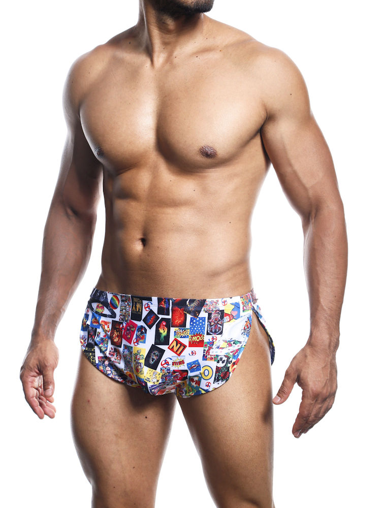 Vanwege de hoog gesneden voor- en achterkant én de extra hoge split aan de zijkant kun je met deze korte short precies dat bedekken wat je niet meteen bloot wilt geven. Relaxed en ruimte aan de voorkant, voor een aangenaam en comfortabel gevoel. Hou je van kleine, korte strakke (sport)broekjes? Dan is de Joe Snyder short absoluut een goede keuze voor jou. Minimale constructie, met maximale ondersteuning en gegarandeerd comfortabel draagplezier. Speciaal voor alle stripboekfanaten, deze grappige variant in wit met kleurrijke JS cartoon print.