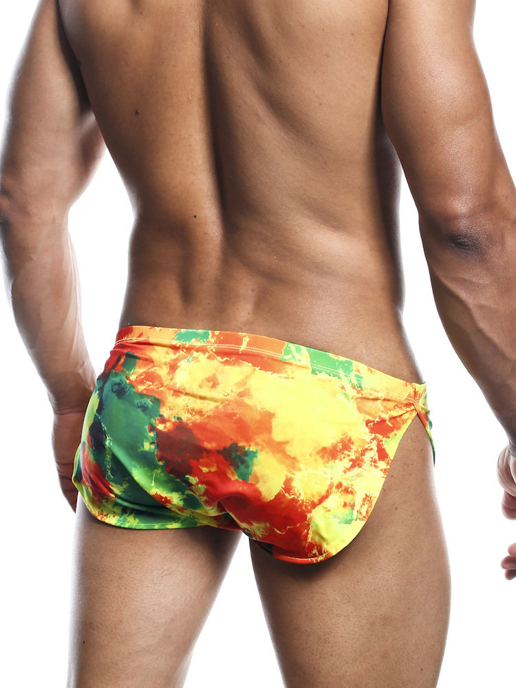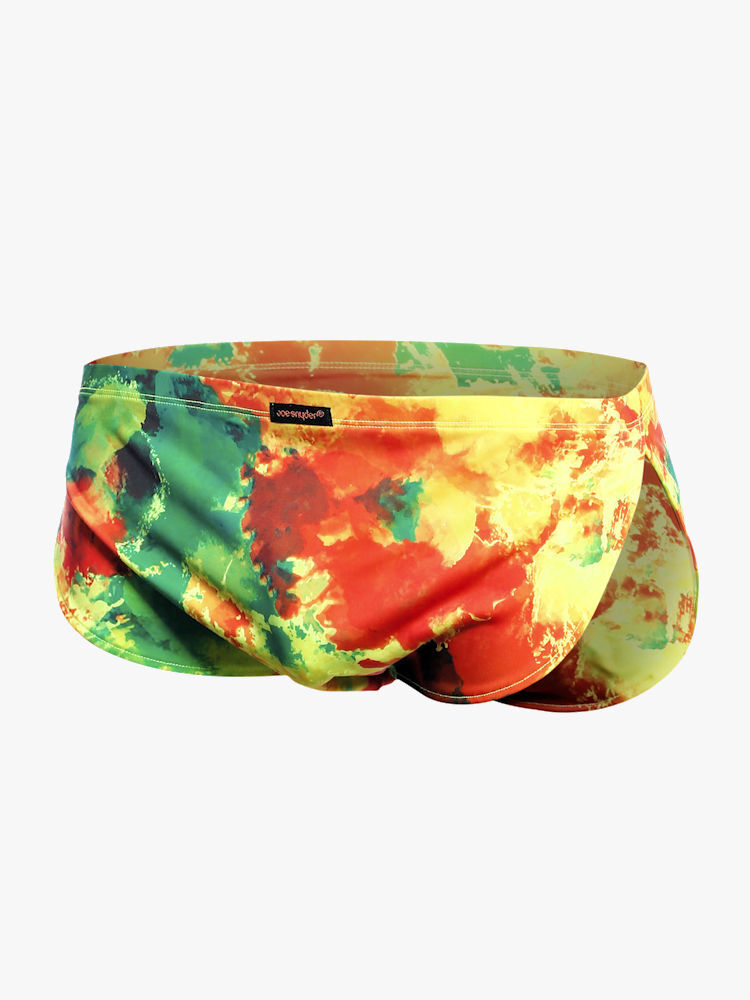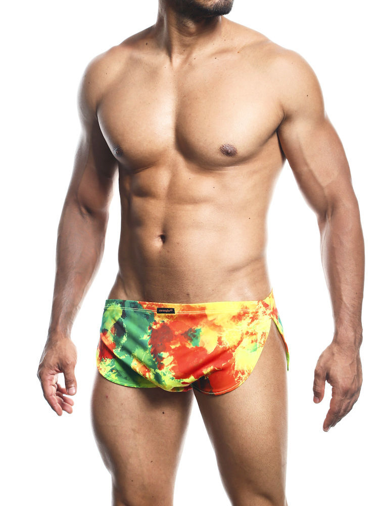 Vanwege de hoog gesneden voor- en achterkant én de extra hoge split aan de zijkant kun je met deze korte short precies dat bedekken wat je niet meteen bloot wilt geven. Relaxed en ruimte aan de voorkant, voor een aangenaam en comfortabel gevoel. Hou je van kleine, korte strakke (sport)broekjes? Dan is de Joe Snyder short absoluut een goede keuze voor jou. Minimale constructie, met maximale ondersteuning en gegarandeerd comfortabel draagplezier. Speciaal voor alle Joe Snyder fans die graag opvallen, deze woeste variant met abstract verfpatroon in groen, geel en oranje.