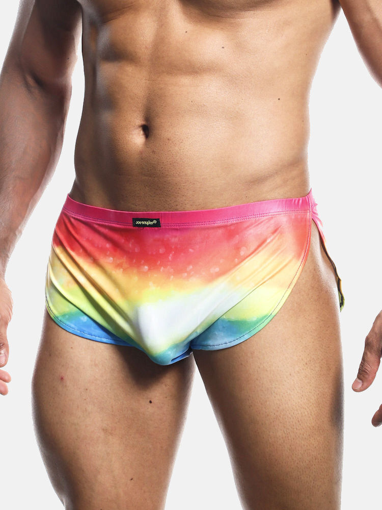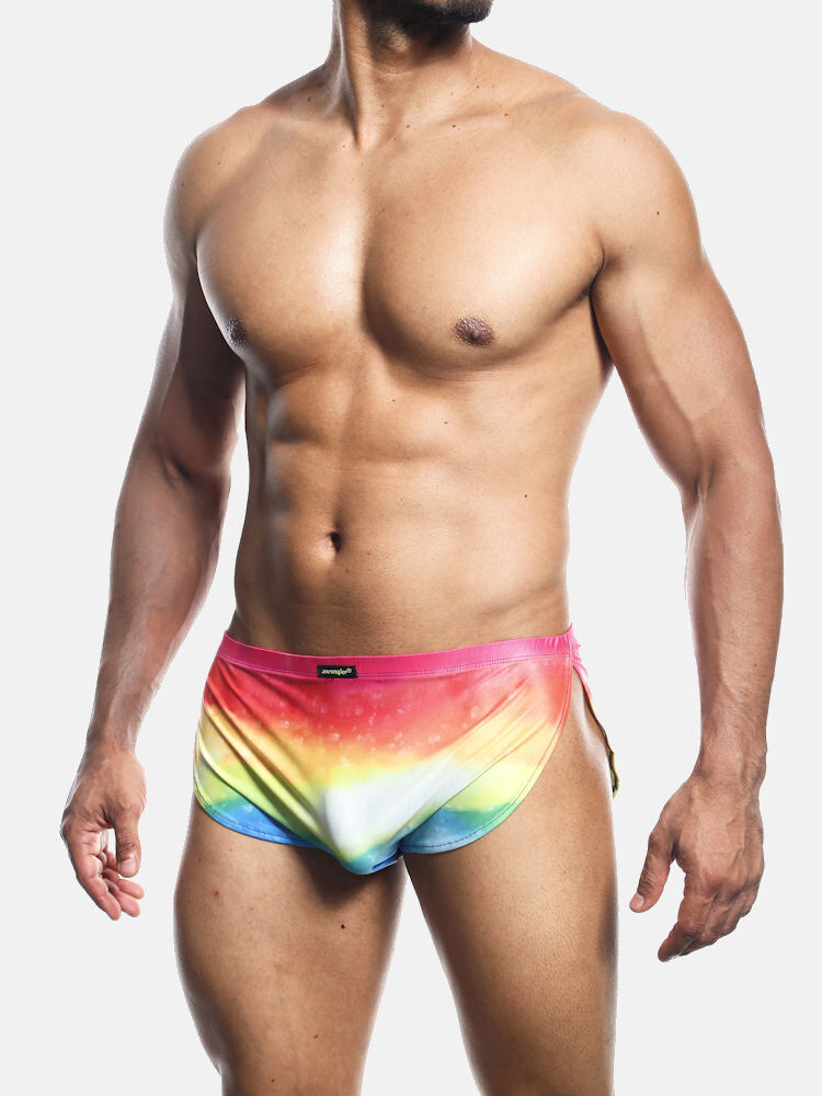 Vanwege de hoog gesneden voor- en achterkant én de extra hoge split aan de zijkant kun je met deze korte short precies dat bedekken wat je niet meteen bloot wilt geven. Relaxed en ruimte aan de voorkant, voor een aangenaam en comfortabel gevoel. Hou je van kleine, korte strakke (sport)broekjes? Dan is de Joe Snyder short absoluut een goede keuze voor jou. Minimale constructie, met maximale ondersteuning en gegarandeerd comfortabel draagplezier. Speciaal voor alle Joe Snyder underwear fans die willen schitteren en stralen, deze glimmende variant met verrassingseffect in regenboogkleuren. Ieder dessin, dus ook iedere short is uniek. Jouw versie kan afwijken van de getoonde foto’s.