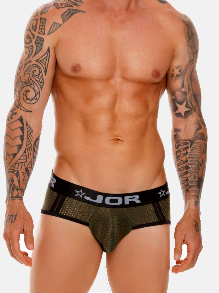 Deze heupslip van soepele geperforeerde stof tilt jouw sportieve prestaties naar een hoger niveau! Vanwege de gladde afwerking is deze JOR Underwear 1635 Electro Brief Green de perfecte basis voor een sportieve en casual look.