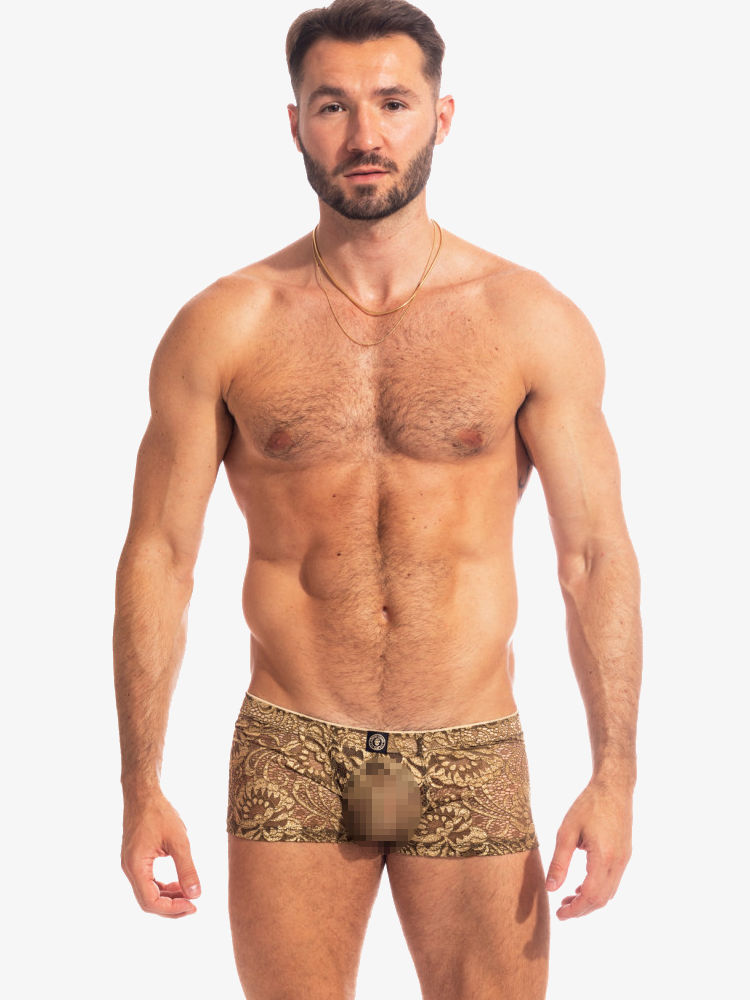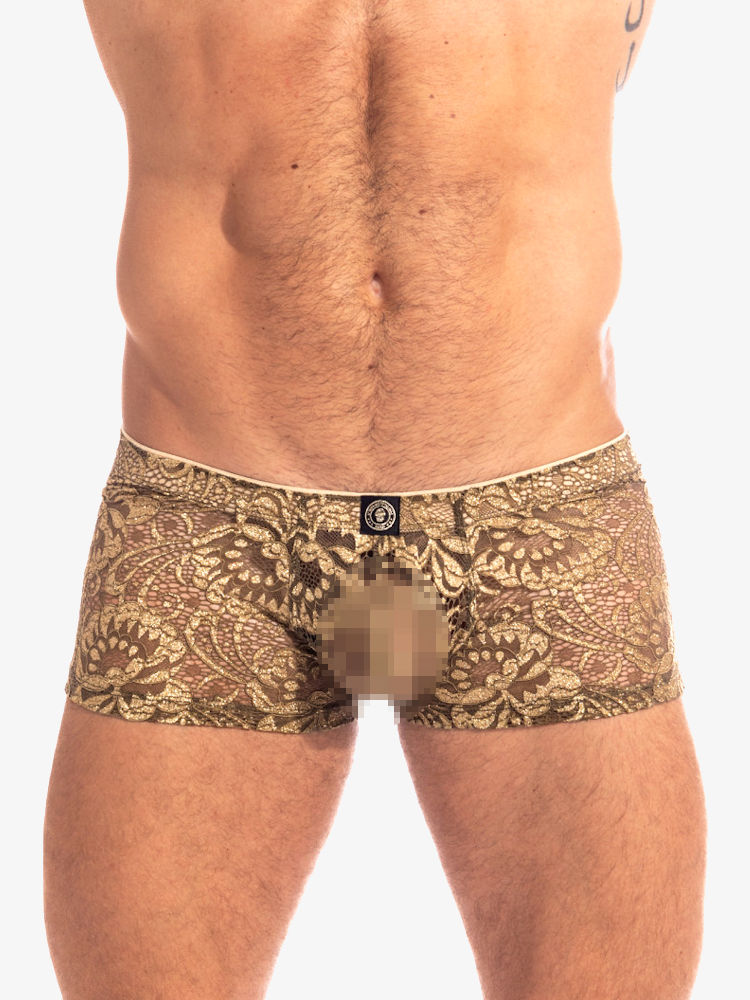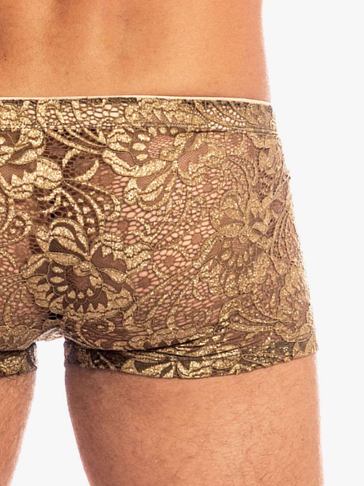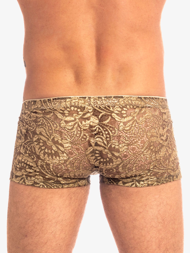 L’Homme Invisible Halcyonique Shorty Push Up boxer van bewerkte stof in goud