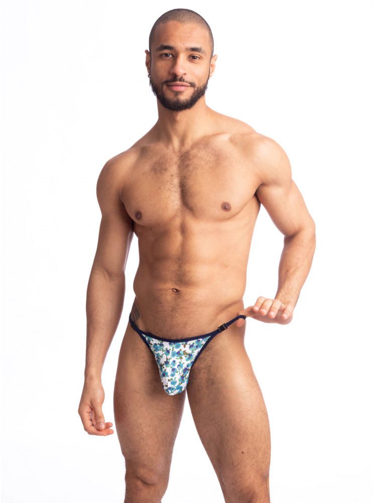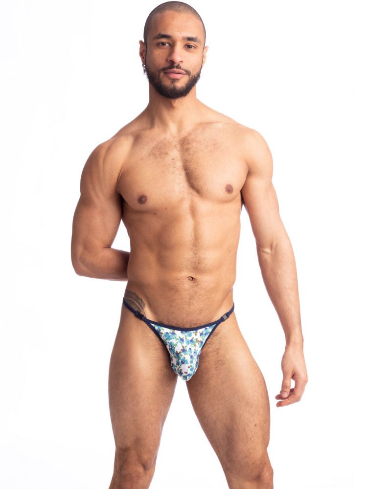 String dragers opgelet! Ervaar het fijne gevoel van de luxueuze stof en geniet van de vrolijke, kleurrijke bloembewerking die de L’Homme Invisible Myosotis String Striptease biedt.