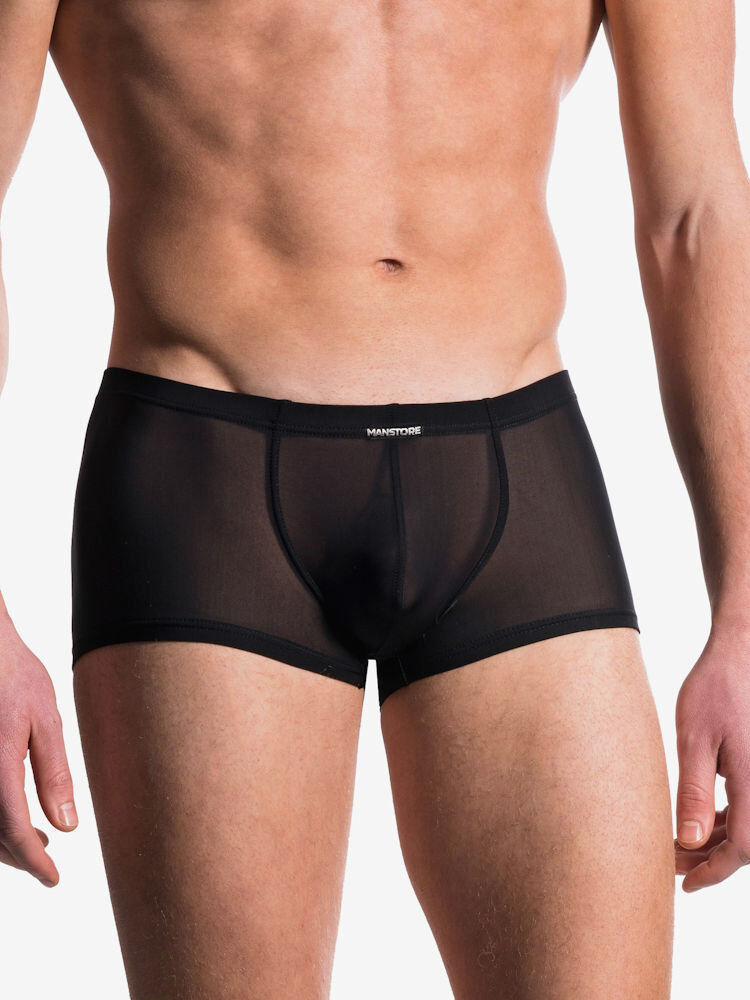 De Manstore M101 collectie is gemaakt van een zeer dunne, gladde en licht doorschijnende stretch-kwaliteit die als een tweede huid om het lichaam valt. Deze boxershort van fijne, dunne zwarte microfiber is speciaal ontworpen voor de moderne man die houdt van eenvoud, kwaliteit en comfort. De voorgevormde voorkant geeft goede ondersteuning en zorgt voor een natuurlijk liftend effect. Vanwege de korte pijpjes heb je geen last meer opkruipende stof en geniet je van nóg meer bewegingsvrijheid. Met andere woorden, de Manstore Micro Pants is een stoere, verleidelijke shorty voor mannen die niet bang zijn zichzelf (een beetje) bloot te geven. Nog steeds een absolute bestseller uit de Manstore M101 serie!