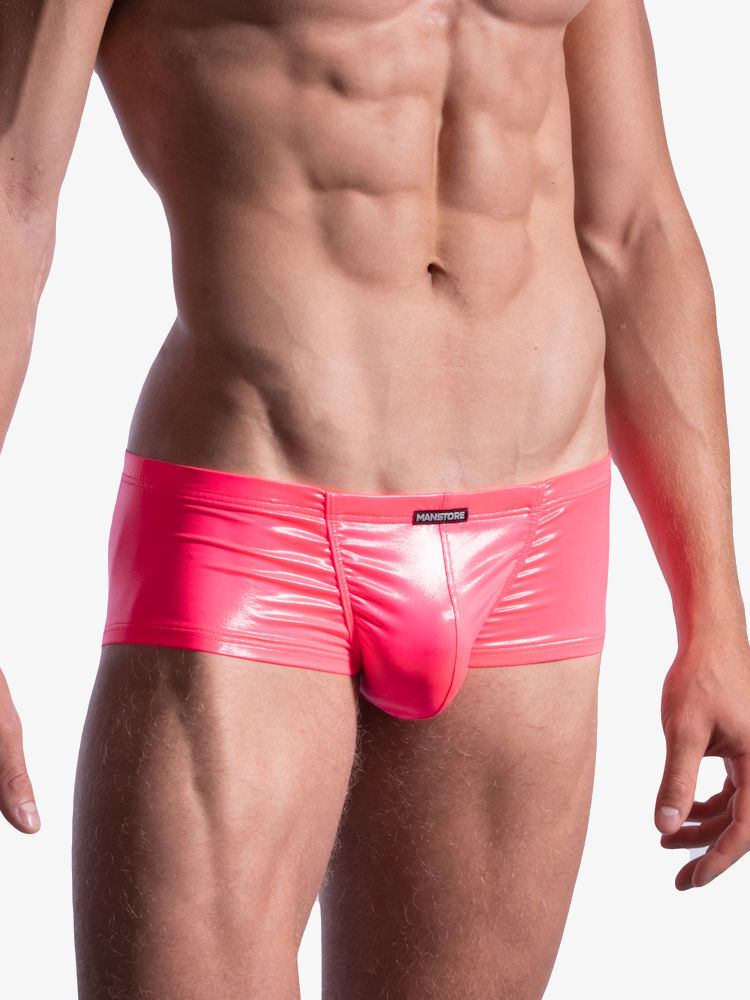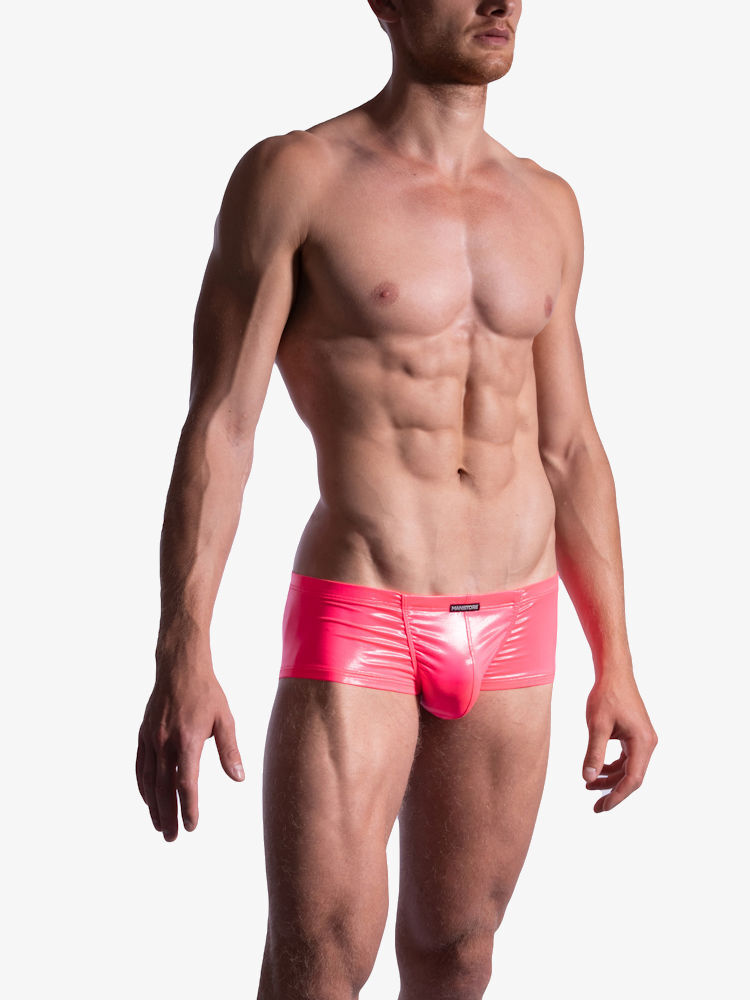 Welke stijl je ook kiest, alle items zijn absolute eyecatchers en must-haves voor de Manstore underwear fan! Manstore combineert vertrouwde ontwerpen, stijl en sensualiteit in de stoere M2180 serie met gedurfd lak effect. Met deze coole Hot Pants ervaar je het vrije gevoel en het draagcomfort van een string en de ondersteuning van een boxer. Laag gesneden bij de buik en hoog bij de billen. De voorgevormde pouch voorkant biedt voldoende ruimte en zorgt voor ondersteuning en een liftend effect. Gemaakt van een soepele gladde stretch in fel roze met glimmende afwerking. Een verfrissende miniboxer met een uitermate stoere en schitterende uitstraling.