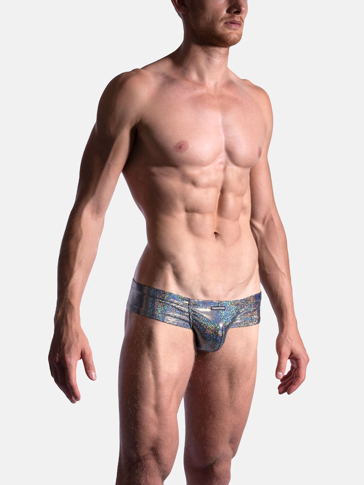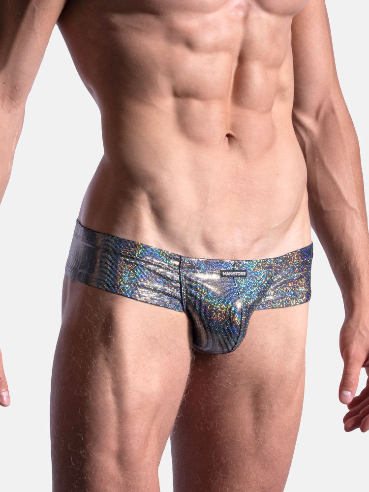 Manstore M2186 cheeky brief stringslip met pouch in glimmende disco optiek