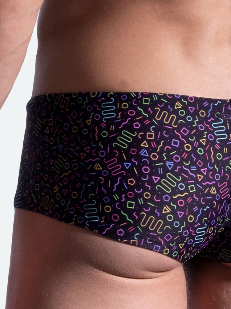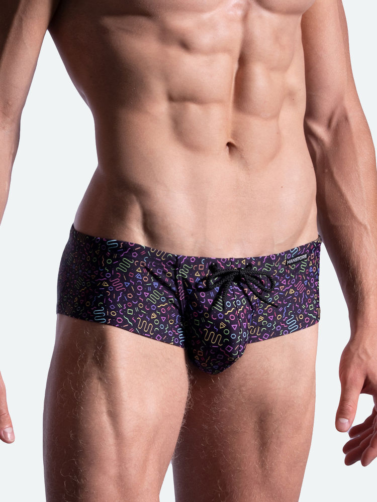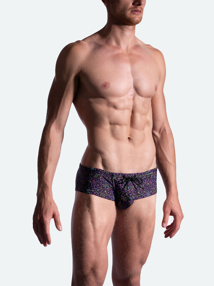Ben je op zoek naar een originele en unieke strakke zwembroek? Ontdek dan snel het comfort van de soepele stretch en de strakke pasvorm van de Manstore Beach Hot Pants. De M2195 serie is gemaakt van een luxe stof in donkerpaars met unieke grafische print in felle kleuren voor een vrolijke en opvallende look. De Beach Hot Pants is een strakke zwembroek die hoog gesneden is bij de billen voor een uitdagende, sportieve look. Geniet optimaal van de zon. De anatomisch vormgegeven pouch voorkant van deze zwembroek biedt perfecte ondersteuning, in en uit het water!