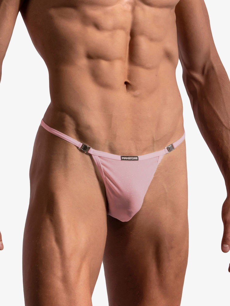 Deze coole Manstore M22179 g-string mag zeker niet ontbreken in jouw party garderobe! Een absolute eyecatcher en must-have voor de Manstore ondergoed liefhebber of string drager! Manstore combineert vernieuwende ontwerpen, stijl en sensualiteit in de opvallende M2179 serie met schitterende party look. Met deze kleine string kan niemand meer om jou heen. De voorgevormde voorkant zorgt dat alles mooi en extra goed tot zijn recht komt. Met de clips geef jij eenvoudig toegang tot al jouw geheimen. Uitgevoerd in zacht roze met metallic afwerking. Spots aan en creëer een oogverblindende look. Bouw je eigen feestje en verras je toeschouwer(s) met deze Manstore g-string. Succes gegarandeerd!