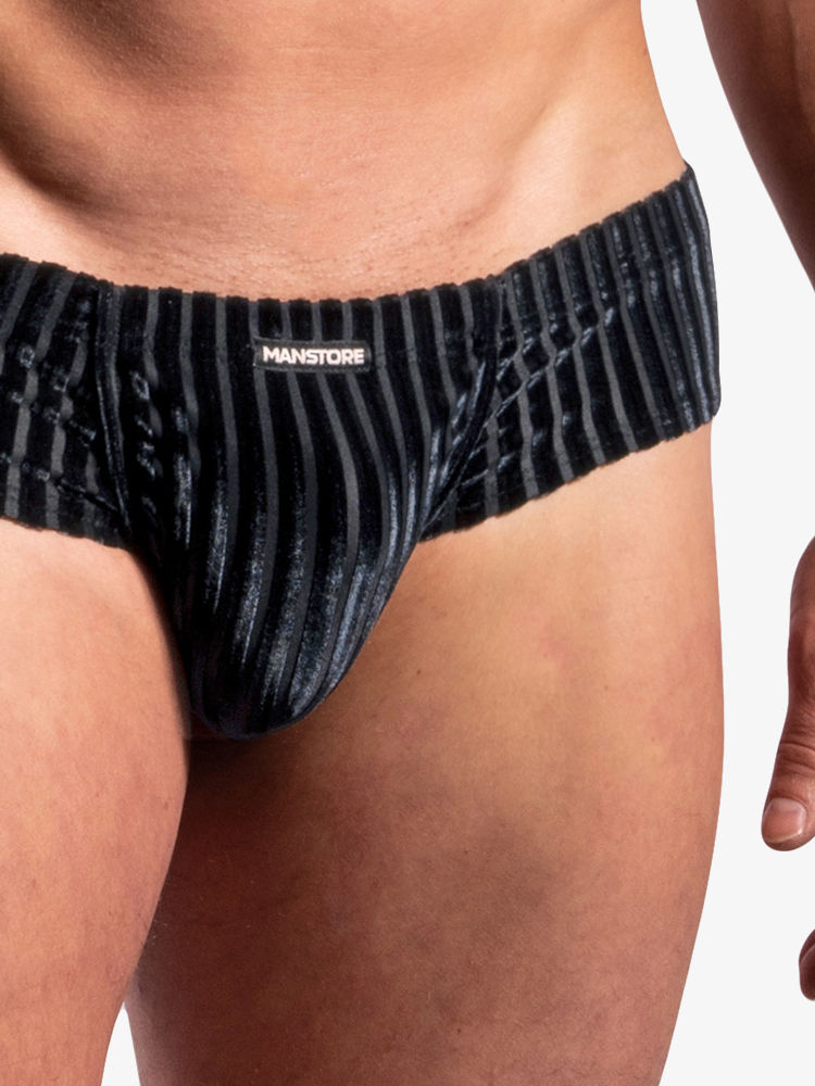 Een fluweelzachte stof, afgewisseld met licht doorschijnende strepen; de Manstore M2242 Cheeky Brief 212056 Black is de perfecte combinatie tussen luxe en sensualiteit. Ontdek zelf deze comfortabele Manstore cheeky.