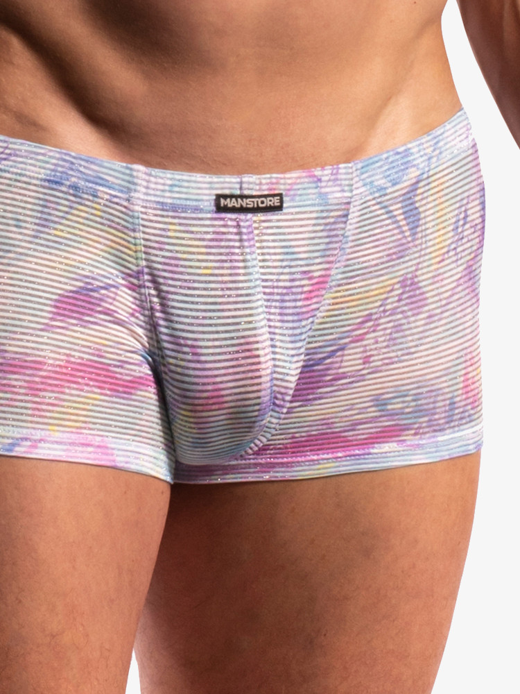 Met de Manstore M2272 Micro Pants 212083 Hologram ben je klaar om te shinen op ieder feestje! Een korte strakke boxershort van dunne pastelkleurige stretch met zilverkleurige lijnen.