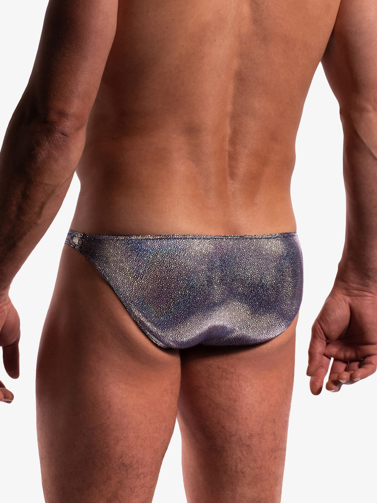 Ontdek de oogverblindende Manstore M2274 Low Rise Brief Disco en geniet van de soepele stretch, strakke pasvorm en de glimmende iridiserende afwerking. De pouch voorkant biedt exact wat jij wilt van een voorkant. Muziek aan, string aan, PARTY!