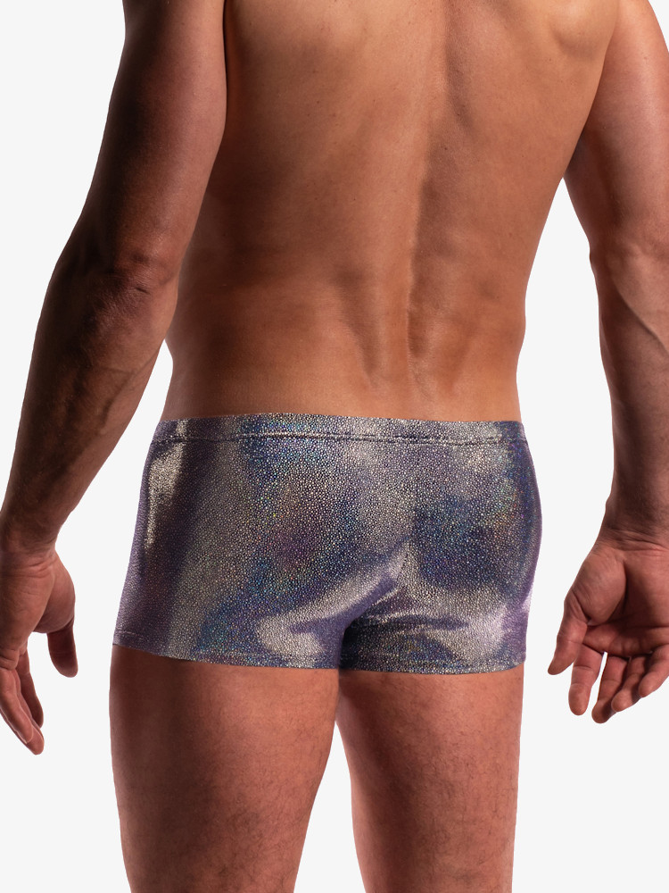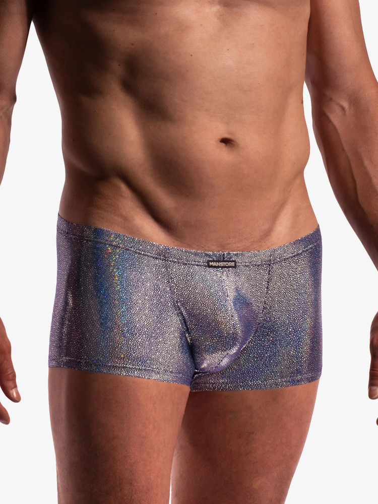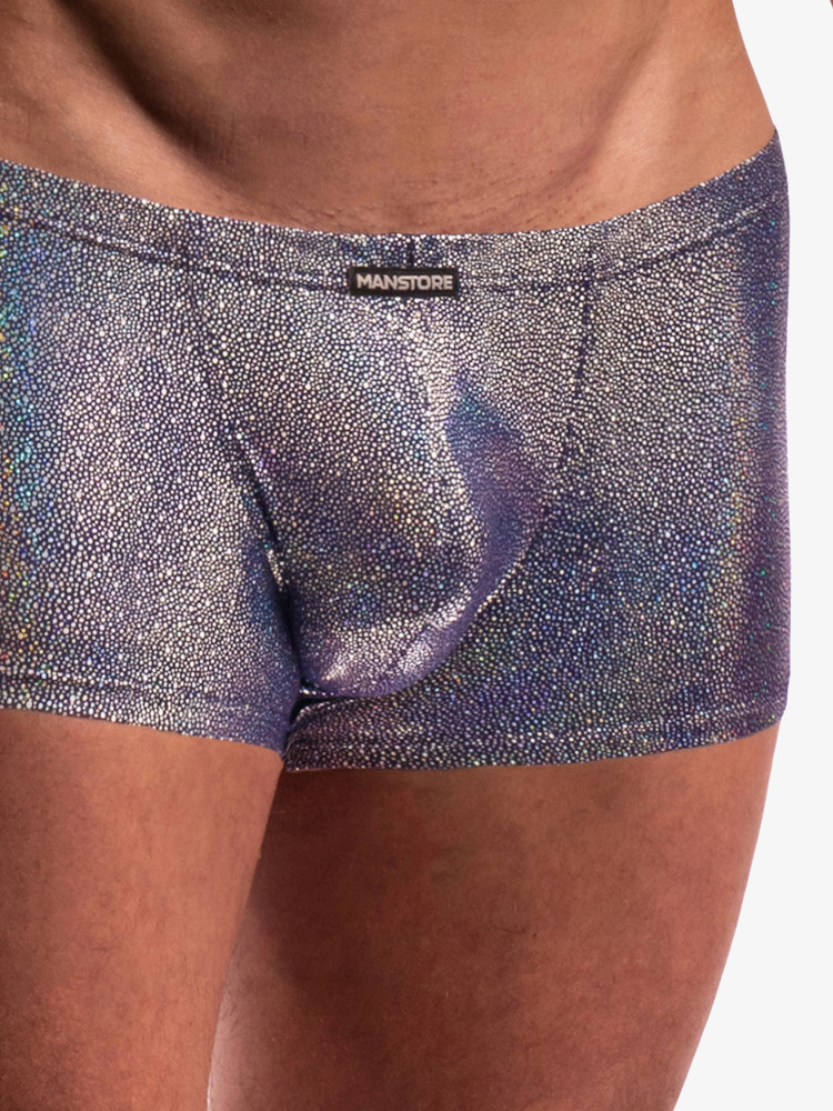 Ontdek de oogverblindende Manstore M2274 Micro Pants Disco en geniet van de soepele stretch, strakke pasvorm en de glimmende iridiserende afwerking. De pouch voorkant van deze korte boxershort biedt exact wat jij wilt van een voorkant. Muziek aan, string aan, PARTY!
