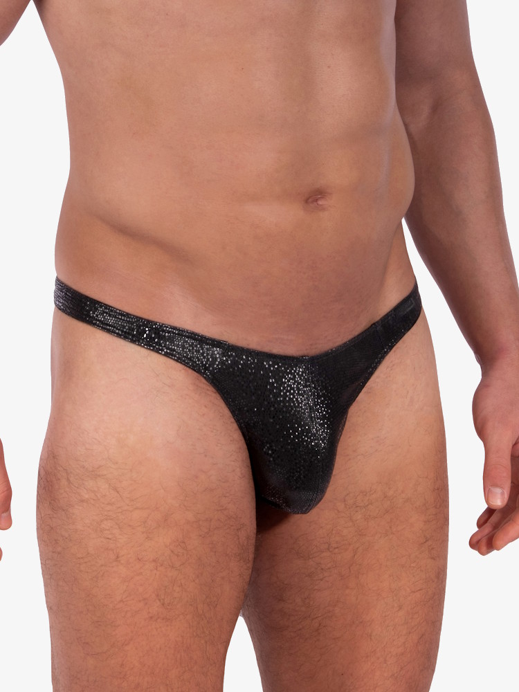 Neem een beetje stretch, een beetje lak kwaliteit en voeg als laatste een glimmende afwerking toe; met deze string uit de Manstore M2317 serie zul jij schitteren als een ster! Een stoere herenstring van luxe imitatieleder stretch met een moderne pasvorm en schitterend karakter.