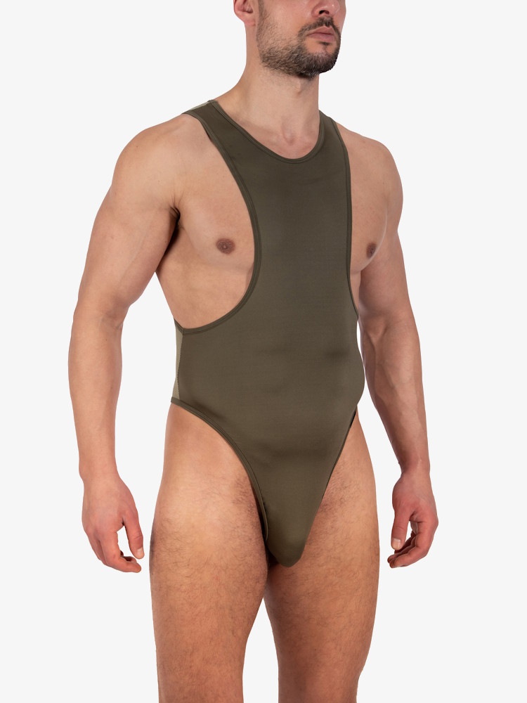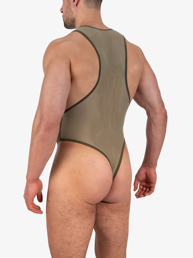 Manstore M2334 String Body 212335 herenbody in combinatie van groene stretch en mesh