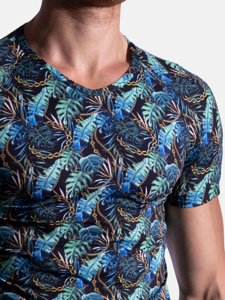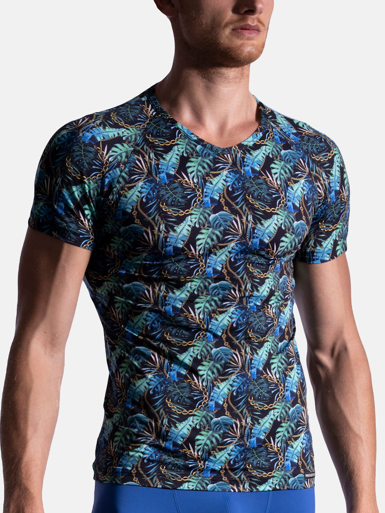 Met de M800 serie brengt het ontwerpteam van Manstore de perfecte combinatie tussen comfort en sportiviteit. De zachte polyamide-stretch kwaliteit voelt zacht aan op de huid en valt soepel om het lichaam. Kies voor deze vrolijke variant met jungle print als je houdt van een uitgesproken fashionable stijl. Het bekende Manstore V-Neck shirt is laag gesneden bij de hals en heeft een raglanmouw voor comfort en een verleidelijke look. Uiteraard met de strakke belijning zodat je het shirt los, of ergens onder kunt dragen. Gun jezelf alleen het beste en ervaar het prettige gevoel van dit luxe jungle stretch t-shirt uit de Manstore M800 collectie.