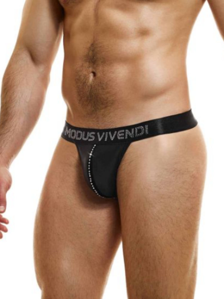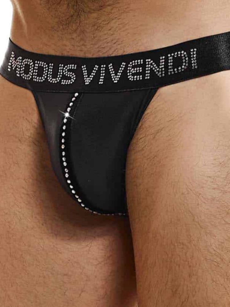 Modus Vivendi Flashy Thong brede tailleband en pouch met strassbewerking in glimmend zwart