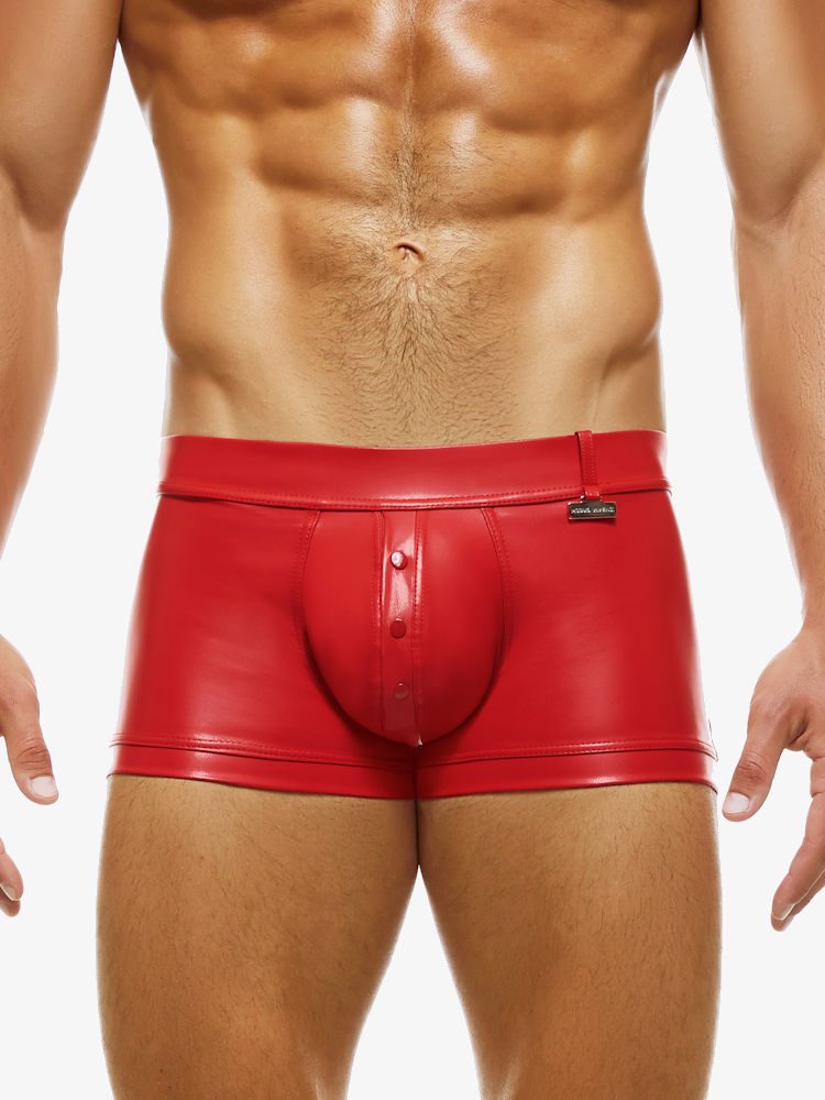 De Leather Legacy serie is gemaakt van een soepele maar ruig ogende stretch met glimmende leder-look. Comfortabel, met een ruig randje. Alle items uit deze collectie zijn spannende eyecatchers en must-haves voor de fetish underwear liefhebber. Met deze fel rode boxershort hoef je geen enkele moeite te doen er ruig uit te zien. De voorgevormde pouch voorkant zorgt voor ondersteuning en een liftend effect. De drukkers geven eenvoudig toegang en een extra dimensie. De Modus Vivendi Leather Legacy Boxer 11121 Red is een lichtgewicht boxershort met een zware uitstraling.
