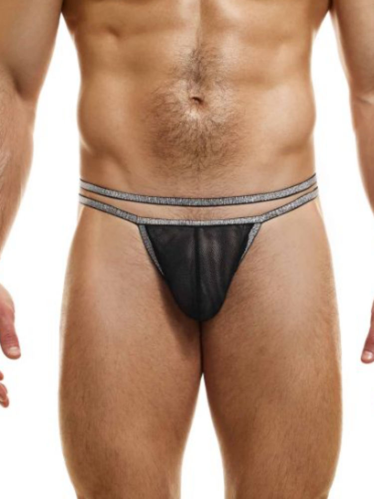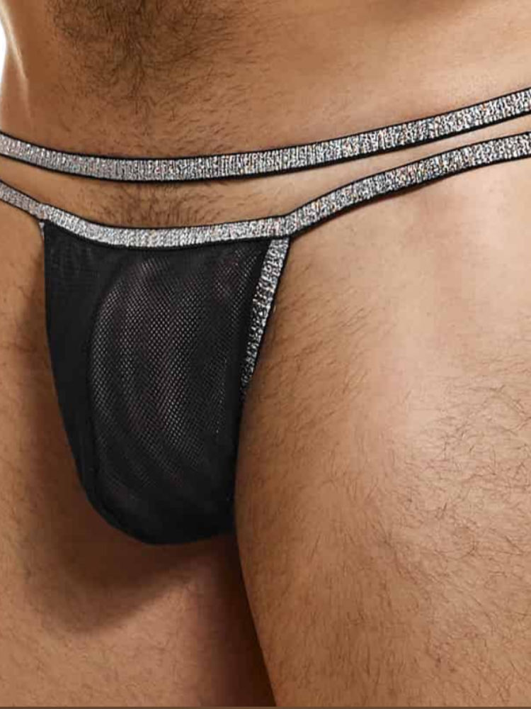Uitdagende mesh t-string voor mannen met glim bewerking