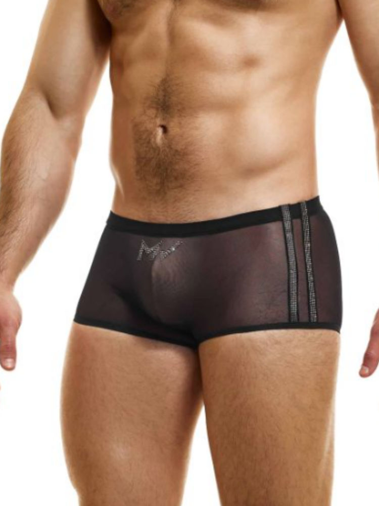 Uitdagende laag gesneden mesh boxer voor heren met strass-afzetting