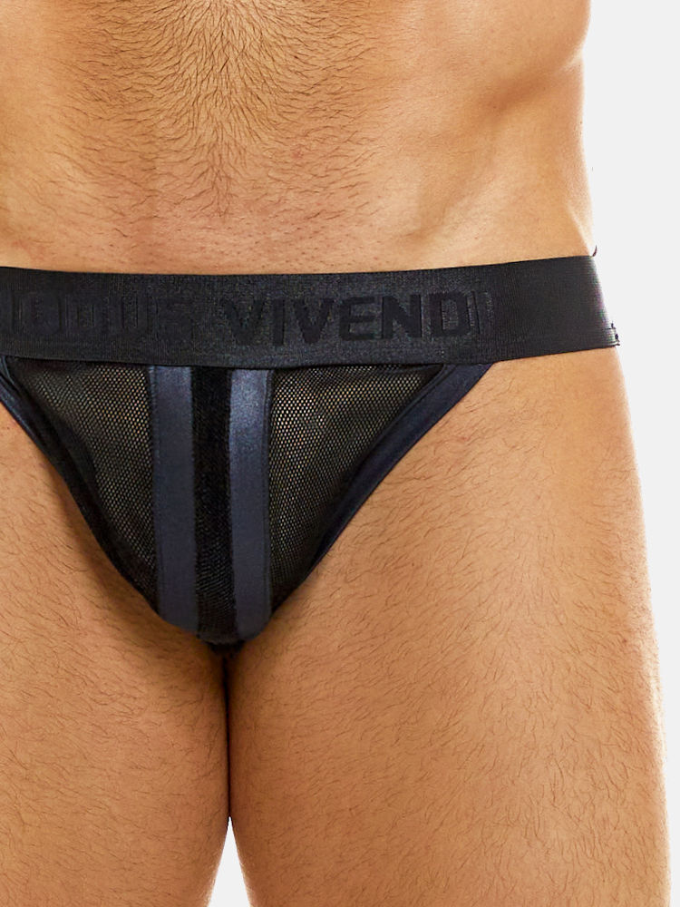 Modus Vivendi V.Fluid Jockstrap 10111 gemaakt van mesh en velours in zwart.