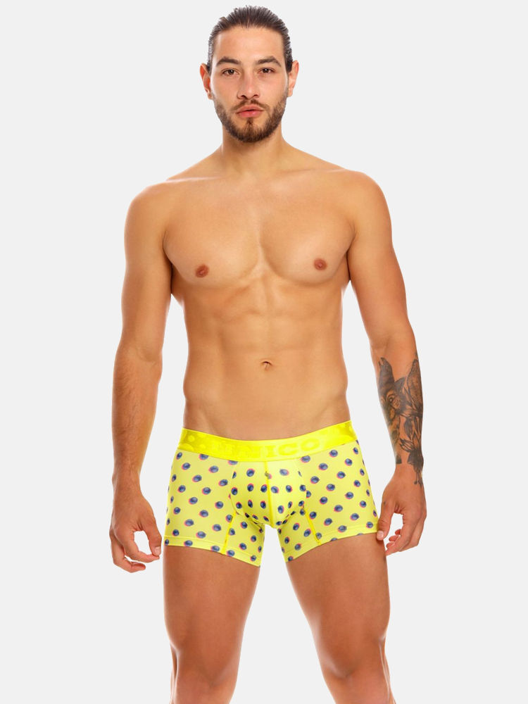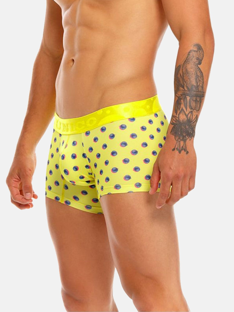 Korte Mundo Unico Unwind boxer van dunne microfiber in geel met bosbessenprint