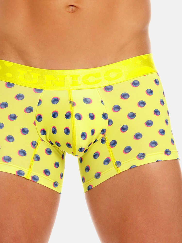 Latijns-Amerikaanse vrolijkheid, draagcomfort, hoogwaardige kwaliteit én een pouch voorkant die zorgt voor goede ondersteuning en een liftend effect. Ook de eye-catching Mundo Unico Boxer Copa Corto Unwind biedt jou deze unieke eigenschappen. De perfecte pasvorm van de korte strakke boxershort zorgt dat deze aansluit op het lichaam en biedt goede ondersteuning tijdens het dragen. Gemaakt van een soepele, gele microfiber met bosbessenprint voor een smakelijke look. Deze gele boxershort van Mundo Unico is afgezet met ton sur ton logo tailleband.