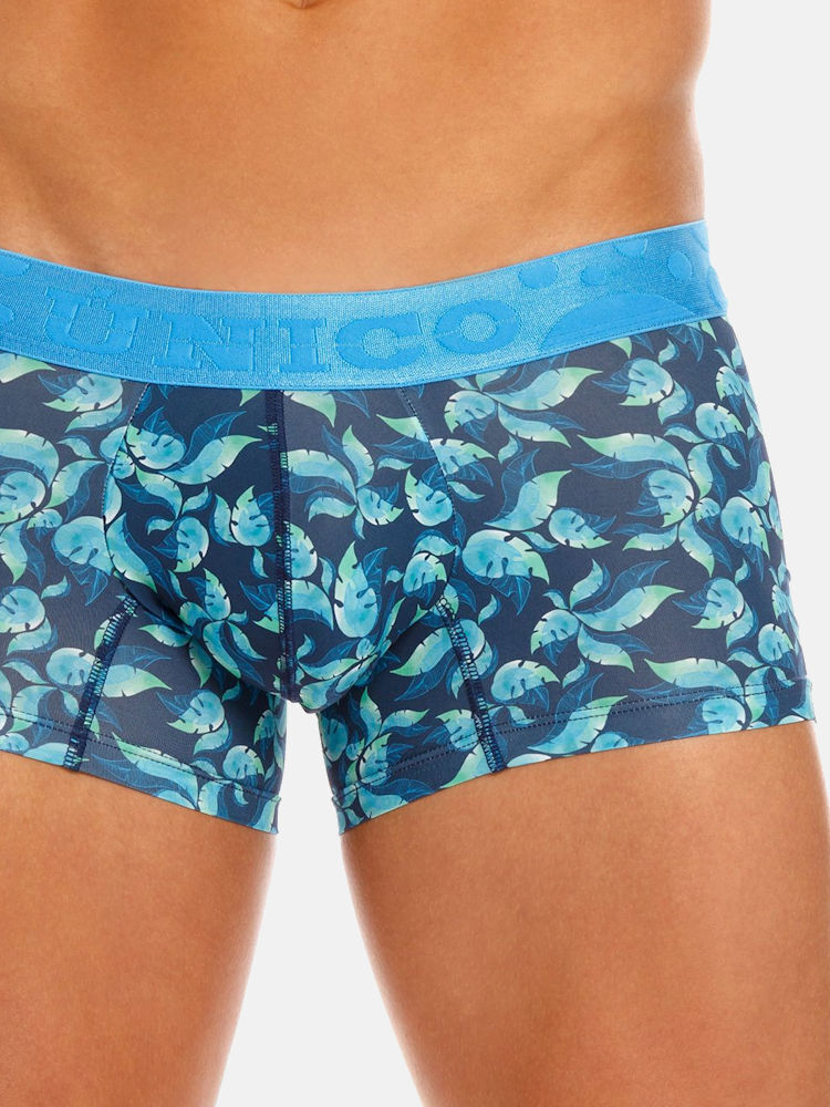 Mundo Unico Brutal boxer van microfiber met bladerenprint in blauwtinten