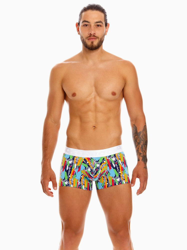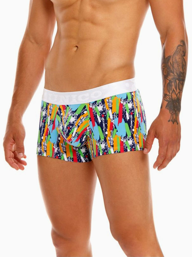 Latijns-Amerikaanse vrolijkheid, draagcomfort, hoogwaardige kwaliteit én een pouch voorkant die zorgt voor goede ondersteuning en een liftend effect. Ook de kunstzinnige Mundo Unico Boxer Copa Corto Solely biedt jou deze unieke eigenschappen. De perfecte pasvorm van de korte strakke boxershort zorgt dat deze aansluit op het lichaam en biedt goede ondersteuning tijdens het dragen. Gemaakt van een stevige katoen-stretch met kleurrijke, abstracte print voor een artistieke en stijlvolle look. Deze katoenen boxershort van Unico is afgezet met witte logo tailleband. Het gebruik van duurzame materialen geeft deze boxershort een groen karakter. GO GREEN in style!