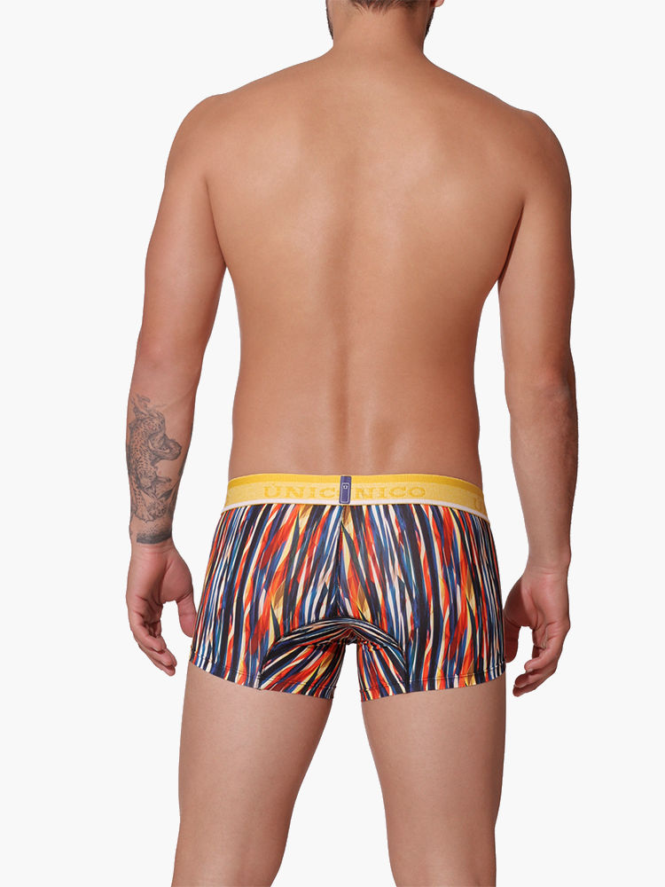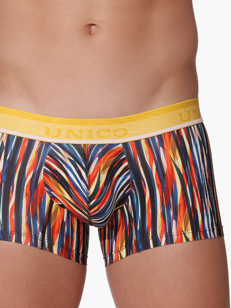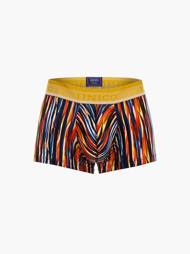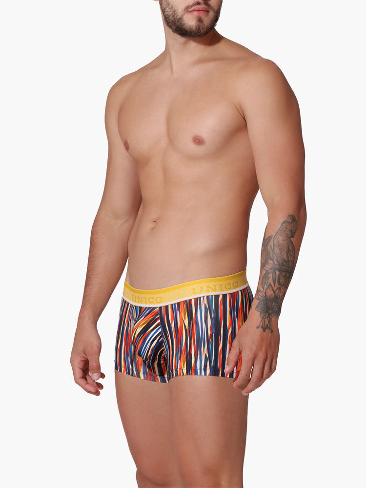 Ervaar zelf de Latijns-Amerikaanse vrolijkheid, het draagcomfort, de hoogwaardige kwaliteit én een pouch voorkant die zorgt voor goede ondersteuning en een liftend effect. Ook de Mundo Unico Boxer Copa Corto Fragmentado biedt jou deze unieke eigenschappen. De perfecte strakke pasvorm van de korte stretch boxershort zorgt dat deze mooi aansluit bij de benen. De pouch voorkant biedt goede ondersteuning tijdens het dragen en zorgt voor een natuurlijk push up effect. Gemaakt van een zachte, soepele microfiber kwaliteit met felgekleurde streeppatroon voor een zomerse, kunstzinnige look. Afgezet met gele logo tailleband. Een warme, stijlvolle Unico boxershort, gemaakt van de allermooiste en beste materialen voor langdurig gebruik en plezier.