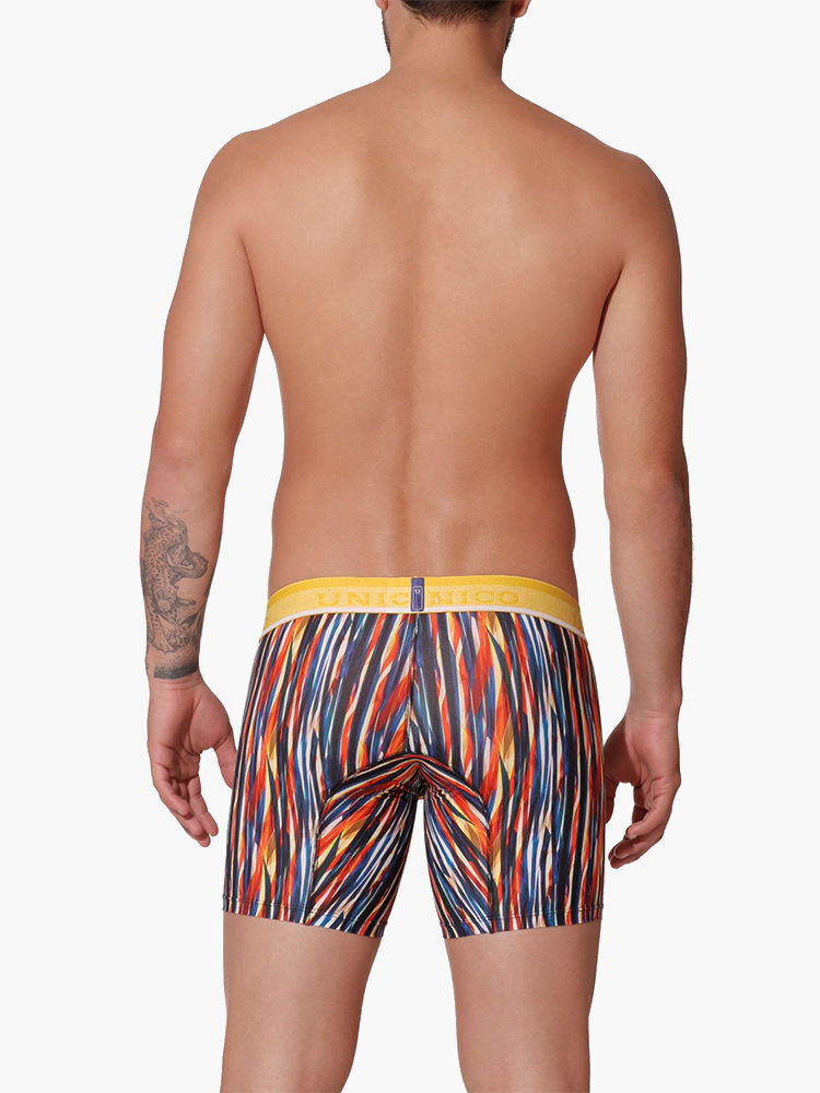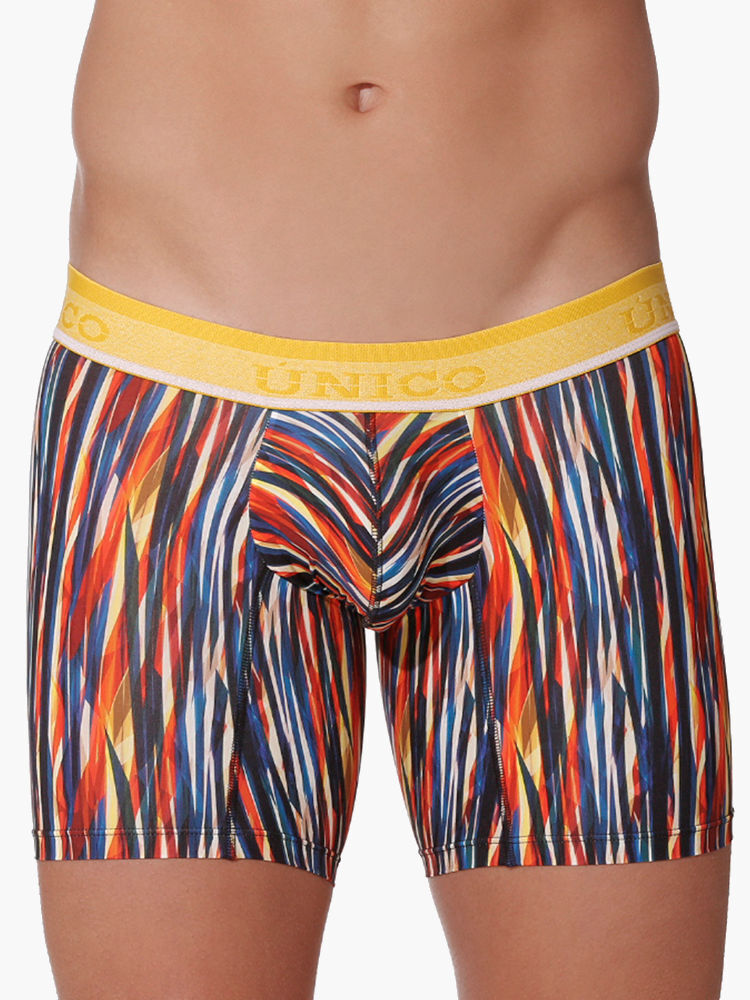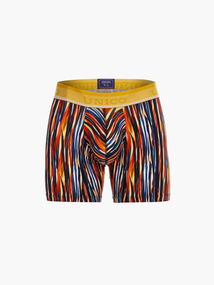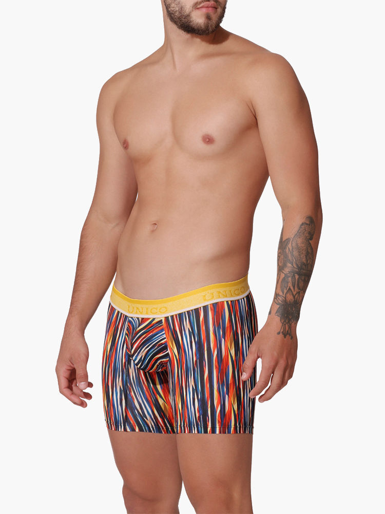 Ervaar zelf de Latijns-Amerikaanse vrolijkheid, het draagcomfort, de hoogwaardige kwaliteit én een pouch voorkant die zorgt voor goede ondersteuning en een liftend effect. Ook de Mundo Unico Boxer Copa Medio Fragmentado biedt jou deze unieke eigenschappen. De perfecte strakke pasvorm van de lange stretch boxershort zorgt dat deze mooi aansluit bij de benen. De pouch voorkant biedt goede ondersteuning tijdens het dragen en zorgt voor een natuurlijk push up effect. Gemaakt van een zachte, soepele microfiber kwaliteit met felgekleurde streeppatroon voor een zomerse, kunstzinnige look. Afgezet met gele logo tailleband. Een warme, stijlvolle Unico boxershort met lange pijpjes, gemaakt van de allermooiste en beste materialen voor langdurig gebruik en plezier.