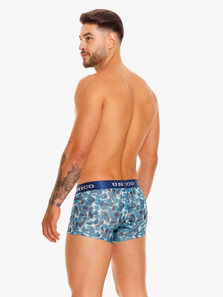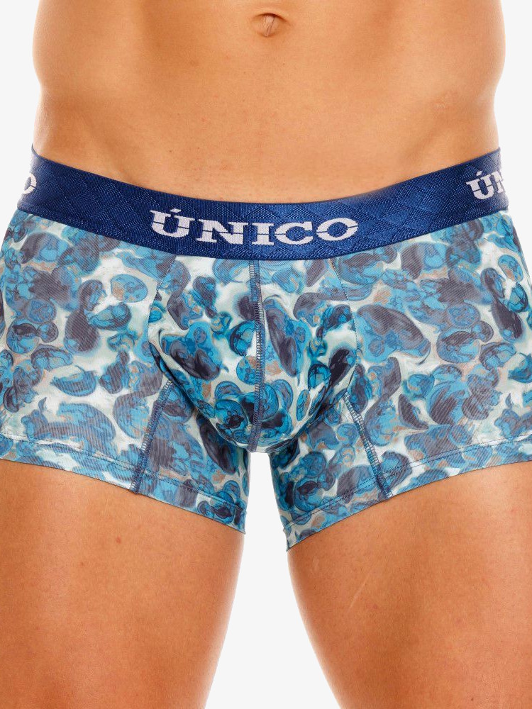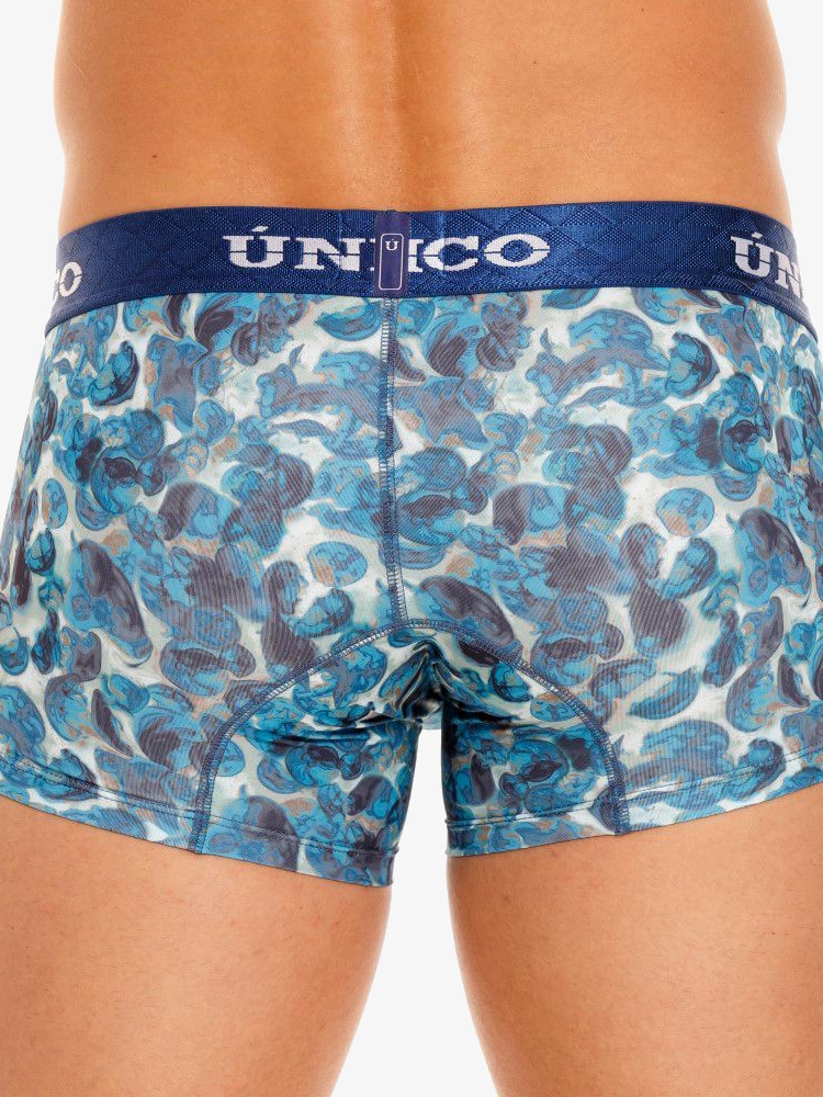 Voeg kleur toe aan je zomer garderobe met de coole Mundo Unico Boxer Corto Esporas. Een prachtige korte boxershort met pouch inzet van soepele microfiber met abstracte print in blauwtinten.