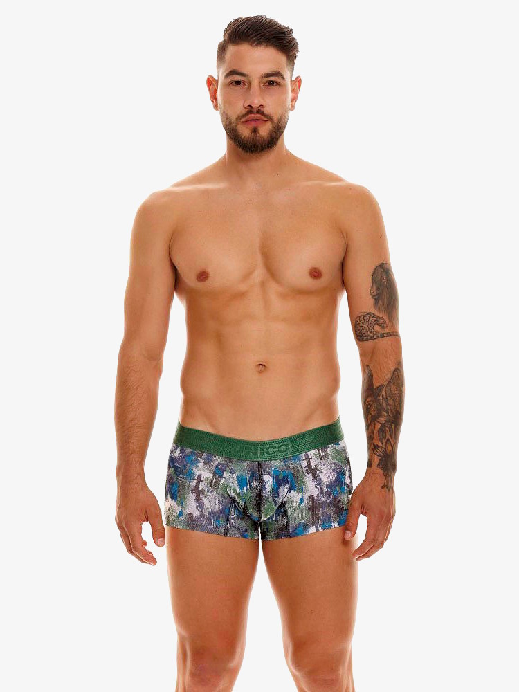 Voeg kleur toe aan je garderobe met de coole en vrolijke Mundo Unico Boxer Corto Paneira. Deze korte Unico boxershort met pouch inzet zal jouw zelfvertrouwen een boost geven, en laat jou kennis maken met de ongekende comfortabele pasvorm van Mundo Unico underwear. Ervaar het zelf met deze microfiber boxershort met abstracte print in groentinten.