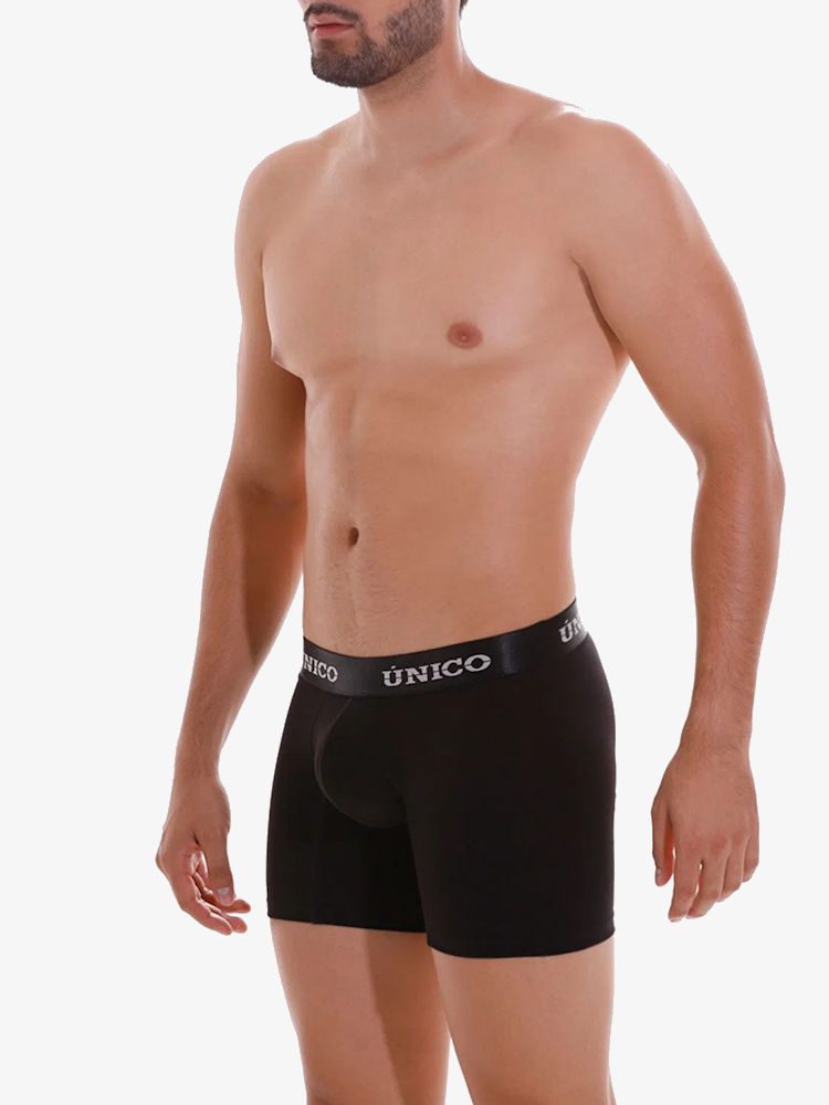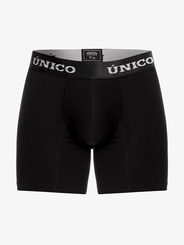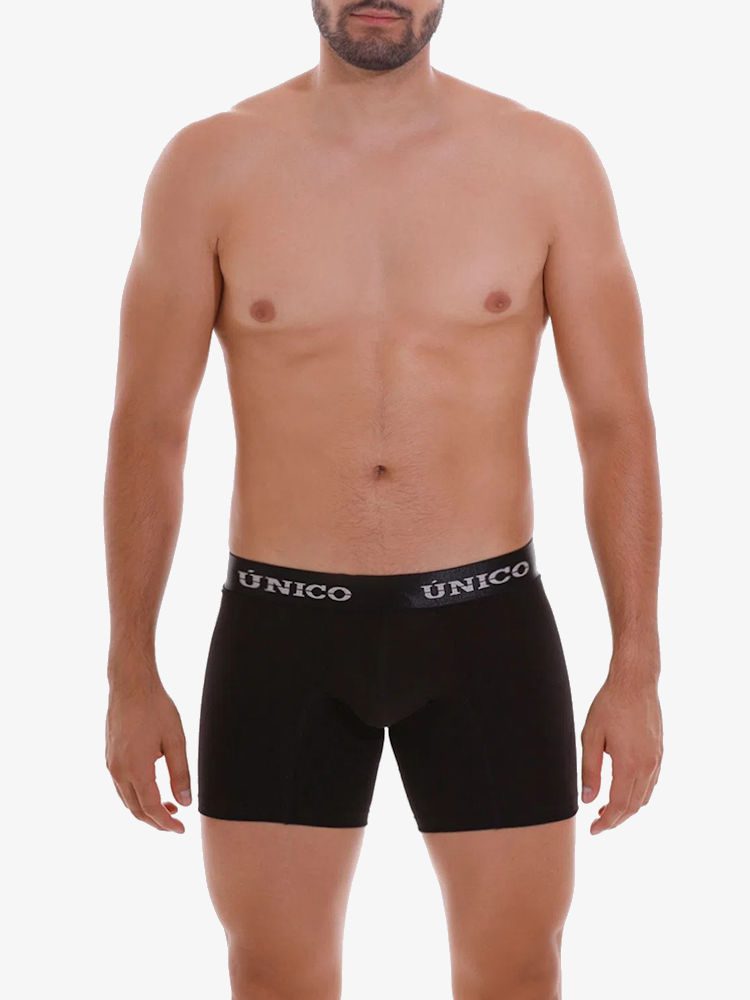 Latijns-Amerikaanse sensualiteit, draagcomfort, kwaliteit, én een voorkant die zorgt voor goede ondersteuning en een push up effect; dat is Mundo Unico ondergoed! Deze strakke boxershort met langere pijpjes is gemaakt van een zachte stretch-katoen kwaliteit en daardoor een genot om te dragen. De perfecte pasvorm van de boxershort zorgt dat deze aansluit als een tweede huid op het lichaam en geeft een goede ondersteuning tijdens het dragen, ondanks de fijne kwaliteit. Deze boxershort is uitgevoerd in zwart voor een stijlvolle look. Afgezet met logo tailleband. Is je maat tijdelijk niet leverbaar of wil je meerdere stuks? Laat het ons weten, wellicht kunnen we dit artikel voor je bestellen!