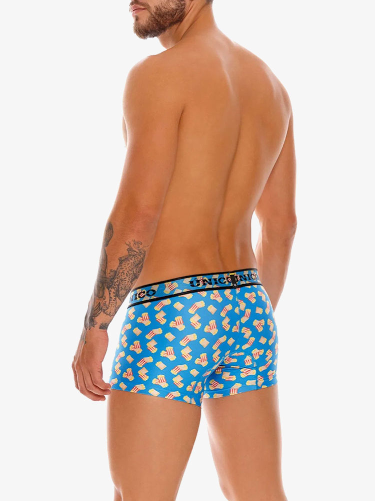 Met de Mundo Unico Papas Fritas boxer ervaar je zelf het gezellige Latijns-Amerikaanse temperament, het draagcomfort, de hoogwaardige kwaliteit én de pouch voorkant die zorgt voor goede ondersteuning en een liftend effect. De mooie strakke pasvorm van de korte katoenen boxershort zorgt dat deze perfect aansluit op het lichaam. Ook biedt de korte short de beste ondersteuning tijdens sportieve activiteiten. De Mundo Unico boxer is gemaakt van een zachte stretch kwaliteit in fel blauw met frites print voor een smakelijke, grappige look. Afgezet met logo tailleband. Een stoere Mundo Unico boxershort, gemaakt van de allermooiste en beste materialen voor langdurig gebruik en plezier.