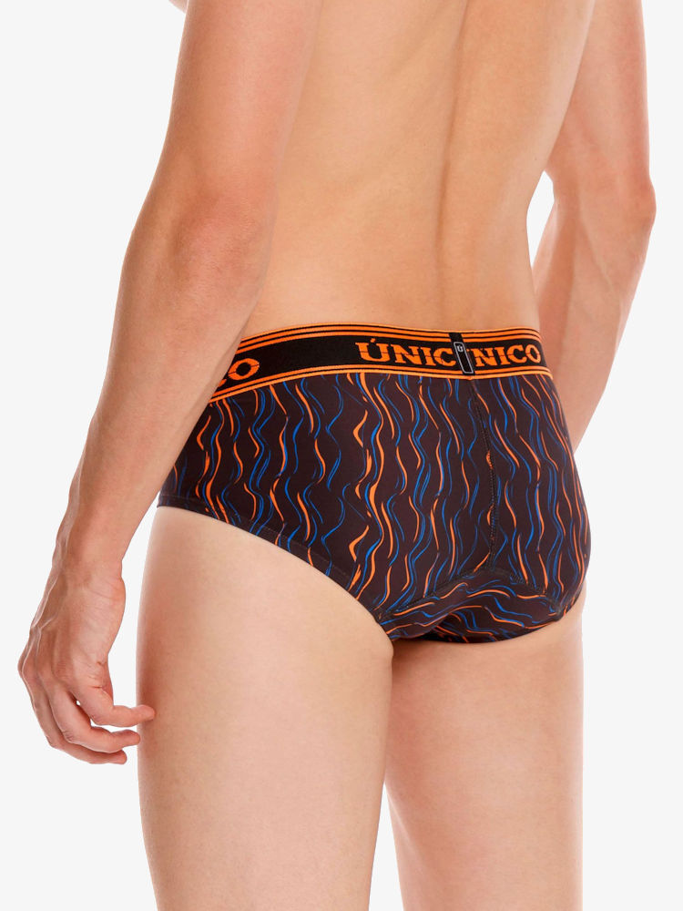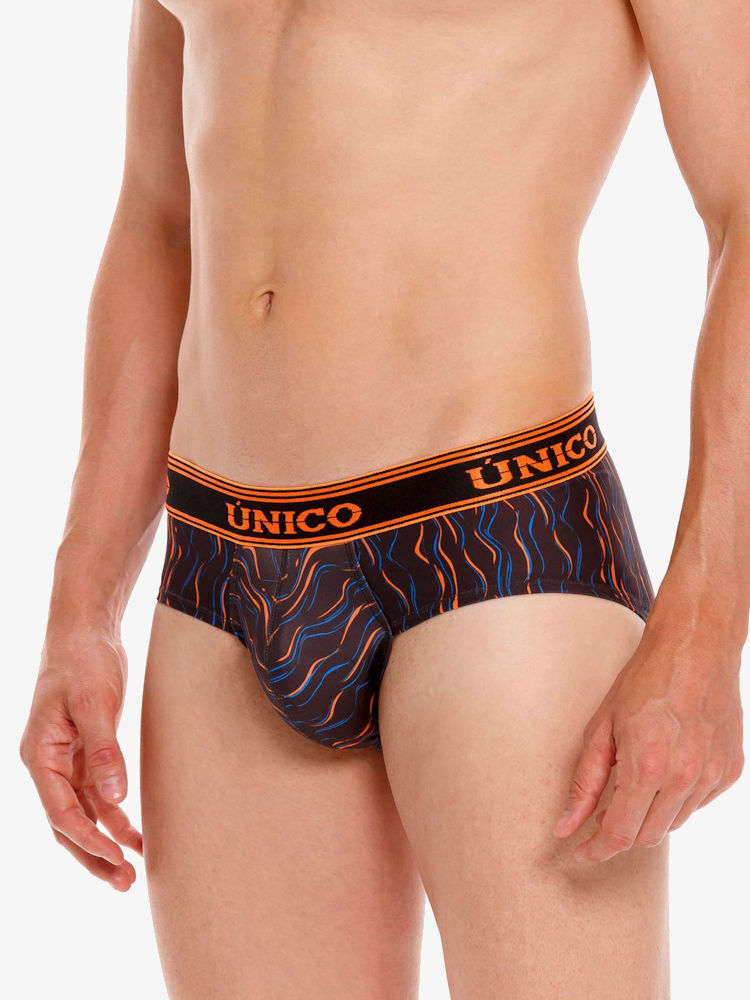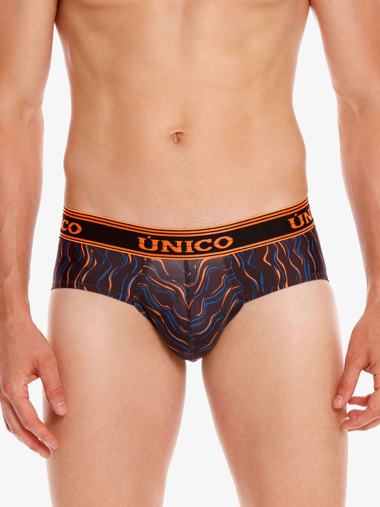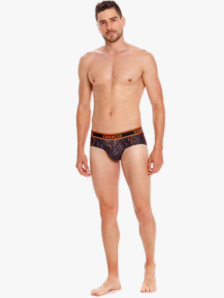 Ervaar zelf het coole Latijns-Amerikaanse gevoel, het draagcomfort, de hoogwaardige kwaliteit én de pouch voorkant die zorgt voor goede ondersteuning en een liftend effect. Ook deze Mundo Unico Brief Copa Aquatica biedt jou deze unieke eigenschappen. De mooie strakke pasvorm van de heupslip zorgt dat deze perfect aansluit op het lichaam. Ook biedt de slip goede ondersteuning tijdens sportieve activiteiten. De Unico Brief Copa Aquatica is gemaakt van een dunne, donkere stretch kwaliteit met fel gekleurde golvenprint voor een frisse, coole look. Afgezet met contrasterende fel oranje logo tailleband. Een stoere Mundo Unico onderbroek, gemaakt van de allermooiste en beste materialen voor langdurig gebruik en plezier.