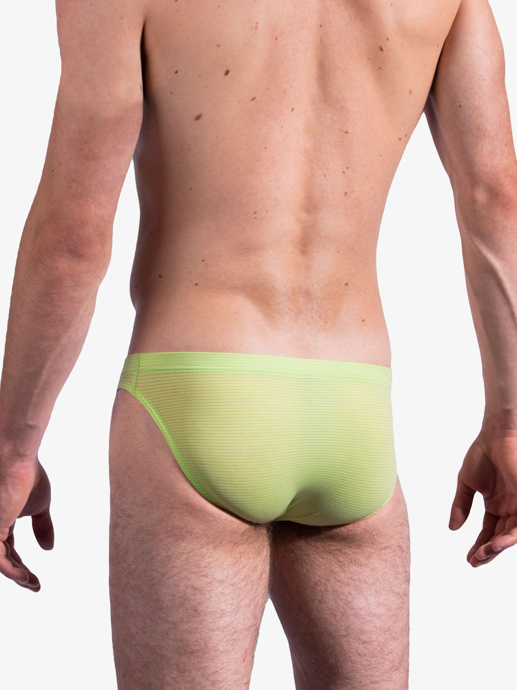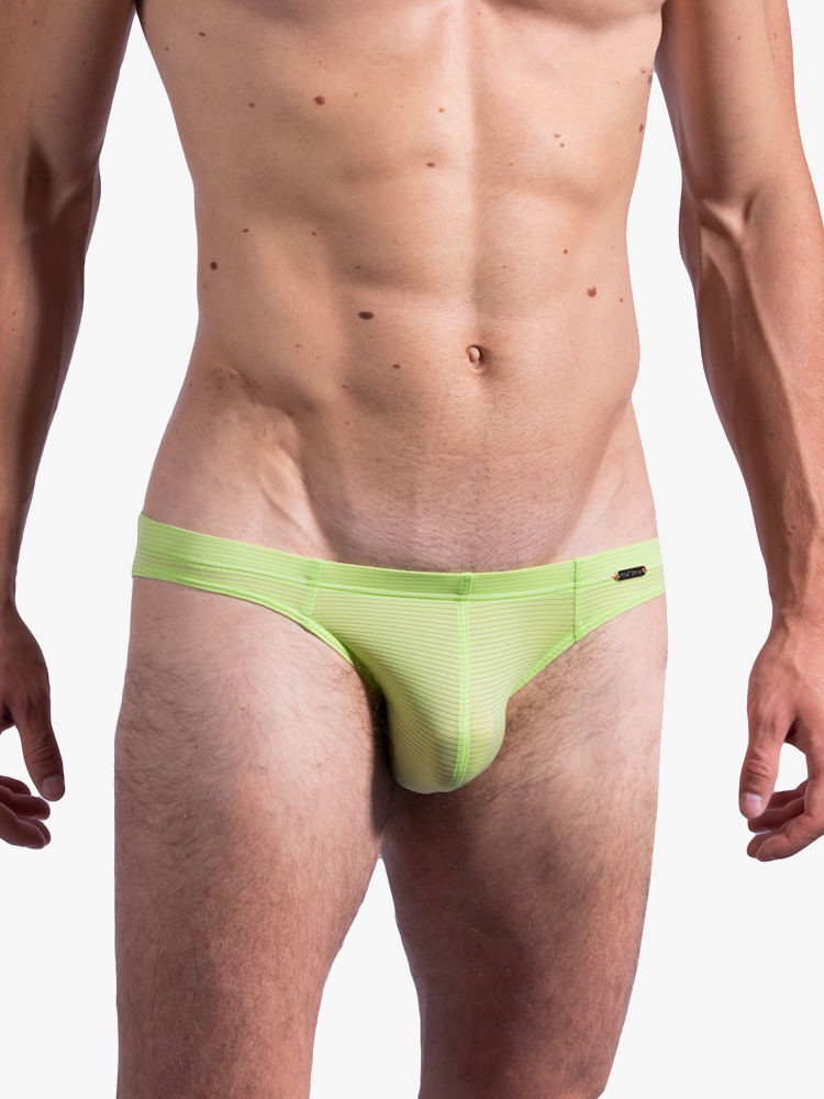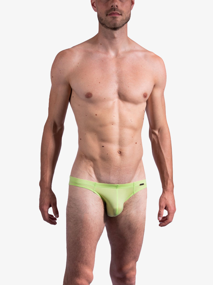 Het materiaal is zo dun dat het licht doorschijnend is en soepel om het lichaam valt. Deze Olaf Benz minislip met perfecte fit zit als gegoten om het lichaam en accentueert het lichaam op de best mogelijk manier. De opvallende fel groene brazilbrief is uitgevoerd in een luxe kwaliteit met een fijn licht doorschijnend horizontaal streepdessin voor een stijlvolle en uitdagende look. Ervaar zelf het sensuele gevoel van de fijne stof op je huid, het draagcomfort en de uitmuntende kwaliteit van deze kiwigroene Olaf Benz slip voor mannen!