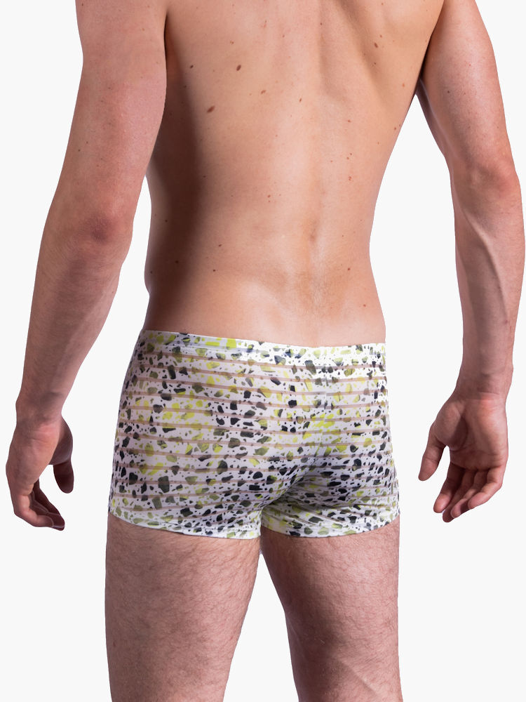 Zacht en cool, aangenaam en comfortabel zoals je gewend bent van Olaf Benz boxershorts. De RED2166 serie is gemaakt van een dunne stretch kwaliteit met abstract dessin in grijs- en groentinten. Het fijne, licht doorschijnende streeppatroon geeft de short zijn stoere, uitdagende look. De voorkant van deze boxer geeft perfecte ondersteuning ondanks de dunne kwaliteit. Laat de vormen van je lichaam tot hun recht komen met deze rijkelijke en verleidelijke heupboxer. Deze coole Olaf Benz Minipants uit de RED2166 serie is de perfecte combinatie tussen comfort en stijl.
