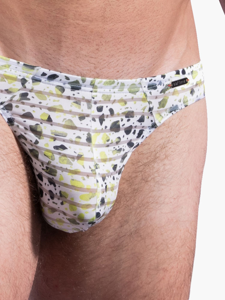 Zacht en cool, aangenaam en comfortabel zoals je gewend bent van Olaf Benz strings. De RED2166 serie is gemaakt van een dunne stretch kwaliteit met abstract dessin in grijs- en groentinten. Het fijne, licht doorschijnende streeppatroon geeft de thong zijn stoere, uitdagende look. De voorkant van de ministring geeft perfecte ondersteuning ondanks de dunne kwaliteit. Laat de vormen van je lichaam tot hun recht komen met deze rijkelijke en verleidelijke herenstring met smalle taille. Deze coole Olaf Benz Ministring uit de RED2166 serie is de perfecte combinatie tussen comfort en stijl.