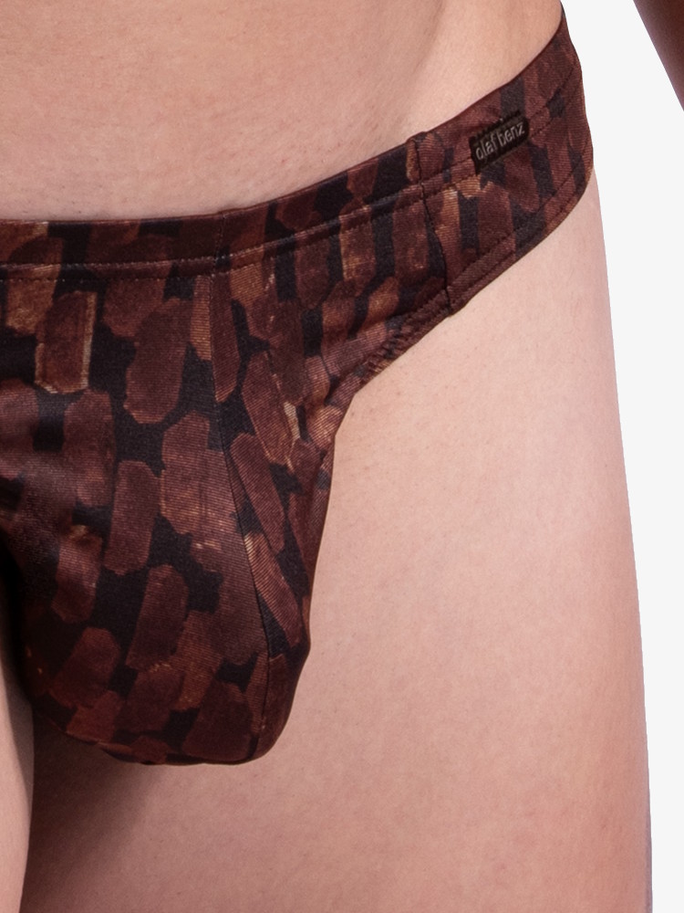 Warm om te zien, en cool om te dragen; met de Olaf Benz RED2308 Ministring 109289 Scale Brown kun jij in stijl genieten van ultiem comfort en een superieure kwaliteit. Een moderne herenstring van soepele stretch met abstract geschubd dessin in bruin- en kopertinten.