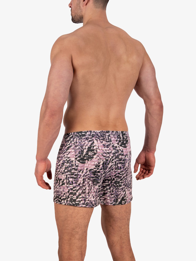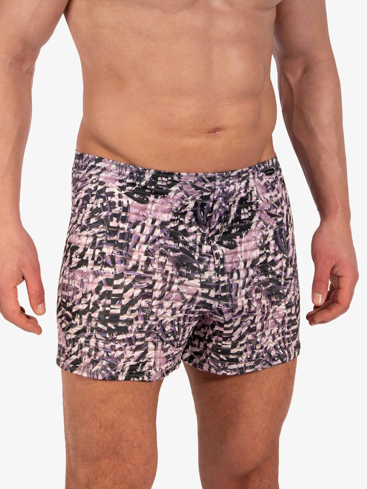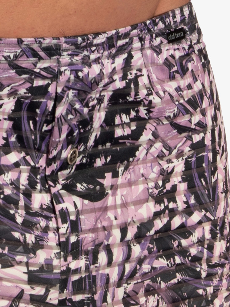 Voeg fun, kleur en stijl toe aan je ondergoedlade met deze Olaf Benz RED2333 Minipants 109372 Violet Style. Een moderne korte boxershort van soepele stretch met abstract bladerendessin in paars- en rozetinten, afgewisseld met doorschijnend streeppatroon. Speciaal ontworpen voor alle boxershortdragers en Olaf Benz ondergoed fans.