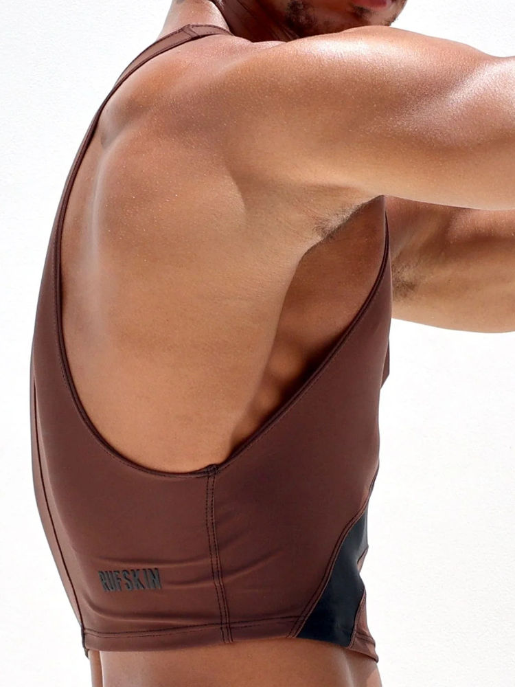 De Rufskin 104 Torso Tank Brown is een ultra sportieve crop-top met halter effect