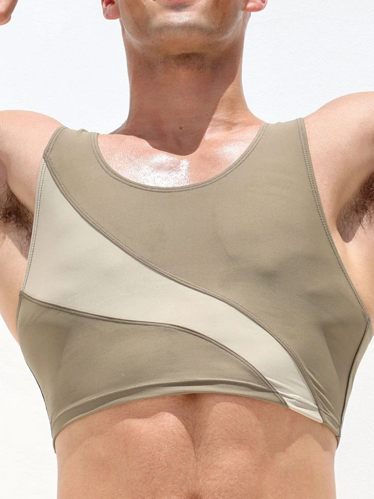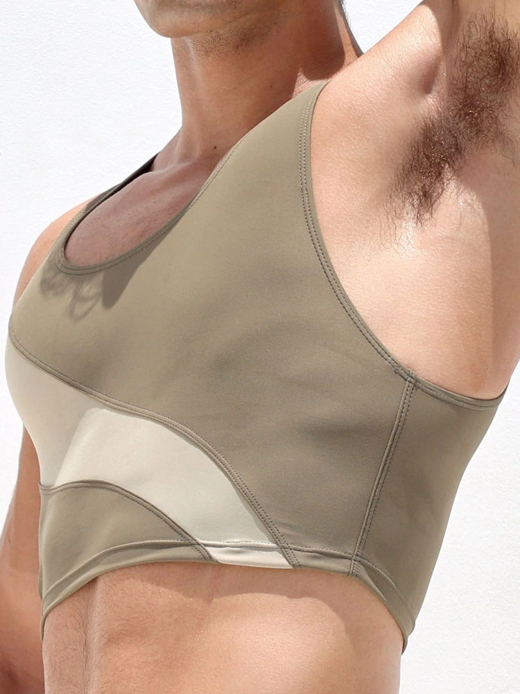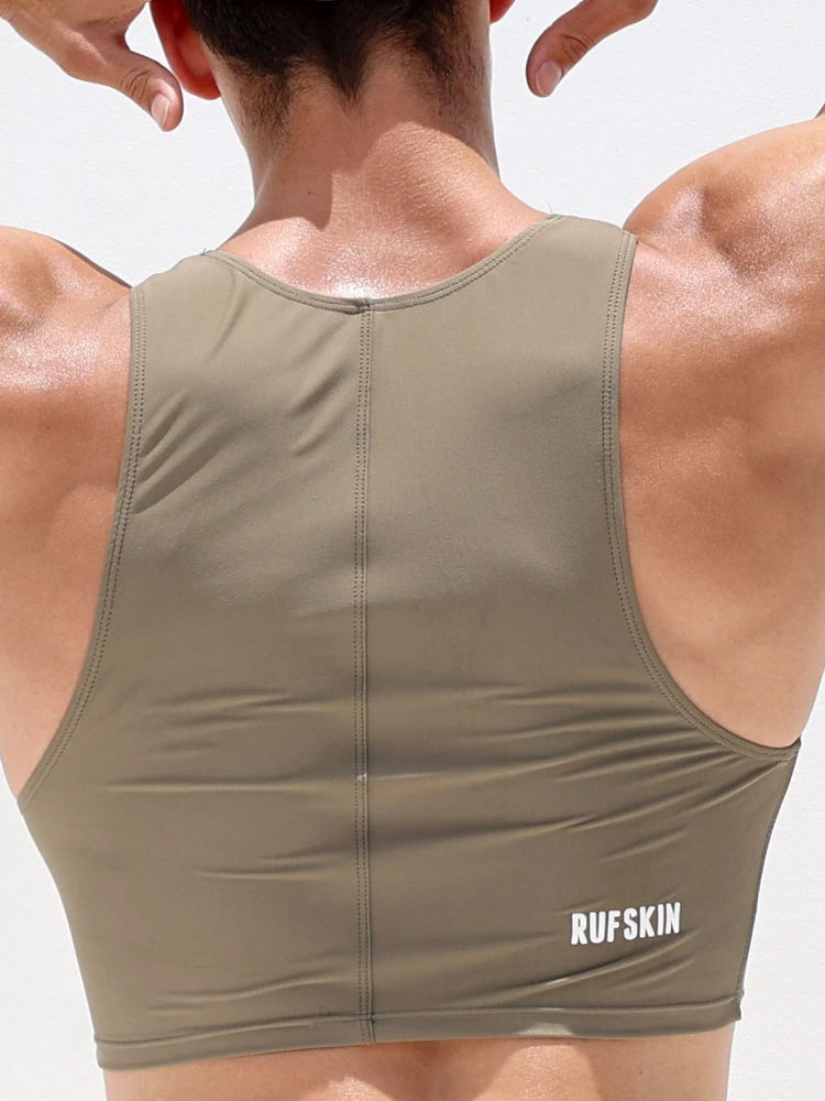 De Rufskin 104 Torso Tank Khaki is een ultra sportieve crop-top met halter effect