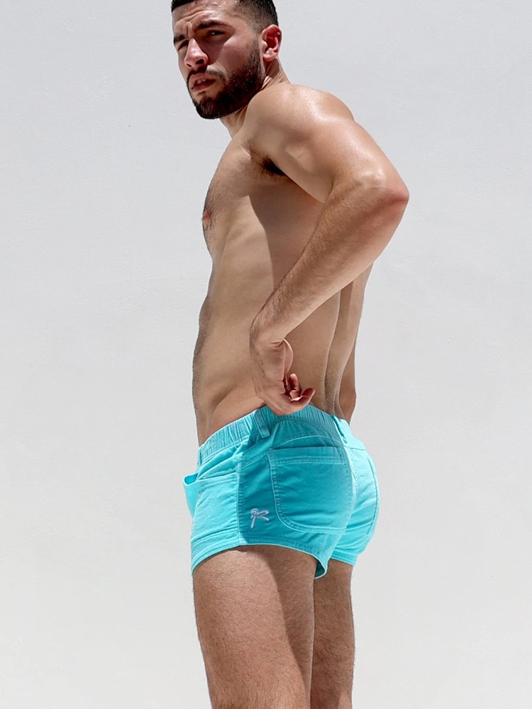 Met de Rufskin Clint Turquoise Short ben je klaar voor warme dagen en avontuurlijke nachten. Combineer deze stoere, zachte turkoois mini-short met jouw favoriete Rufskin zwembroek of onderbroek, óf draag ‘m zonder iets er onder. Show those legs!
