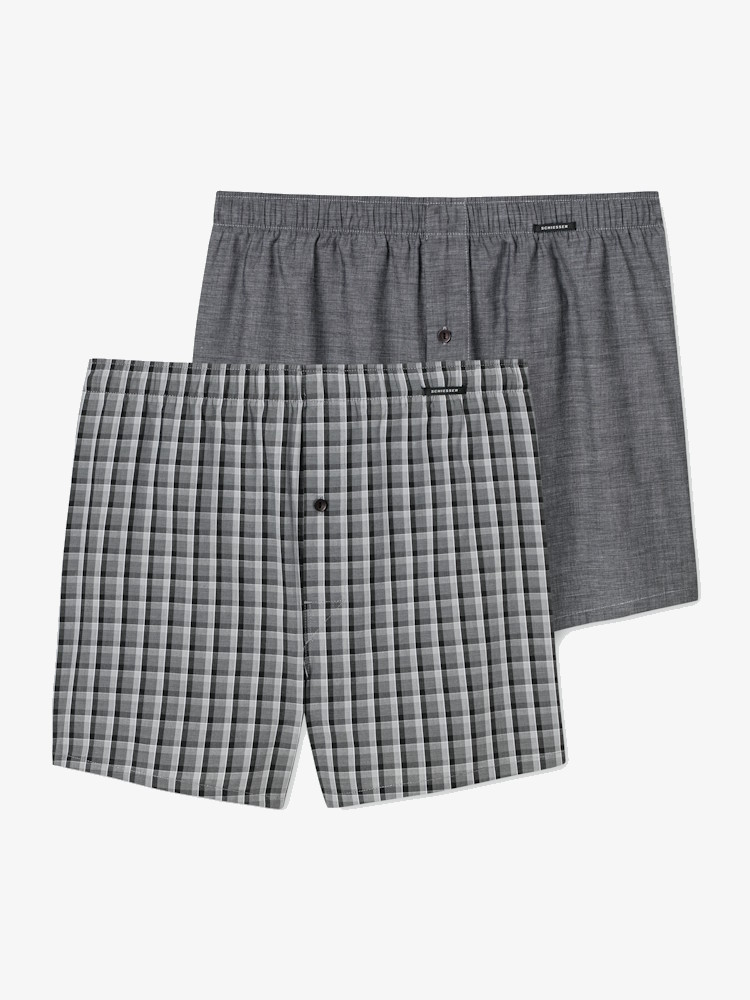 Schiesser Boxershorts 2 Pack 180500 set losse boxers met gulp in zwart en ruitdessin in groentinten