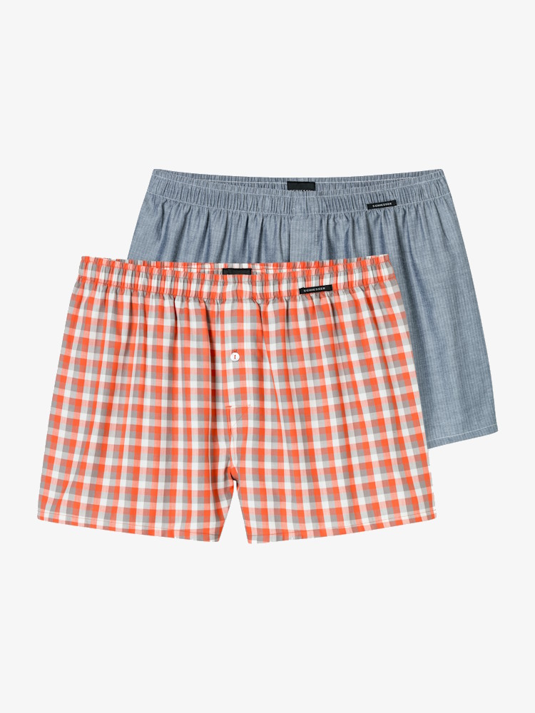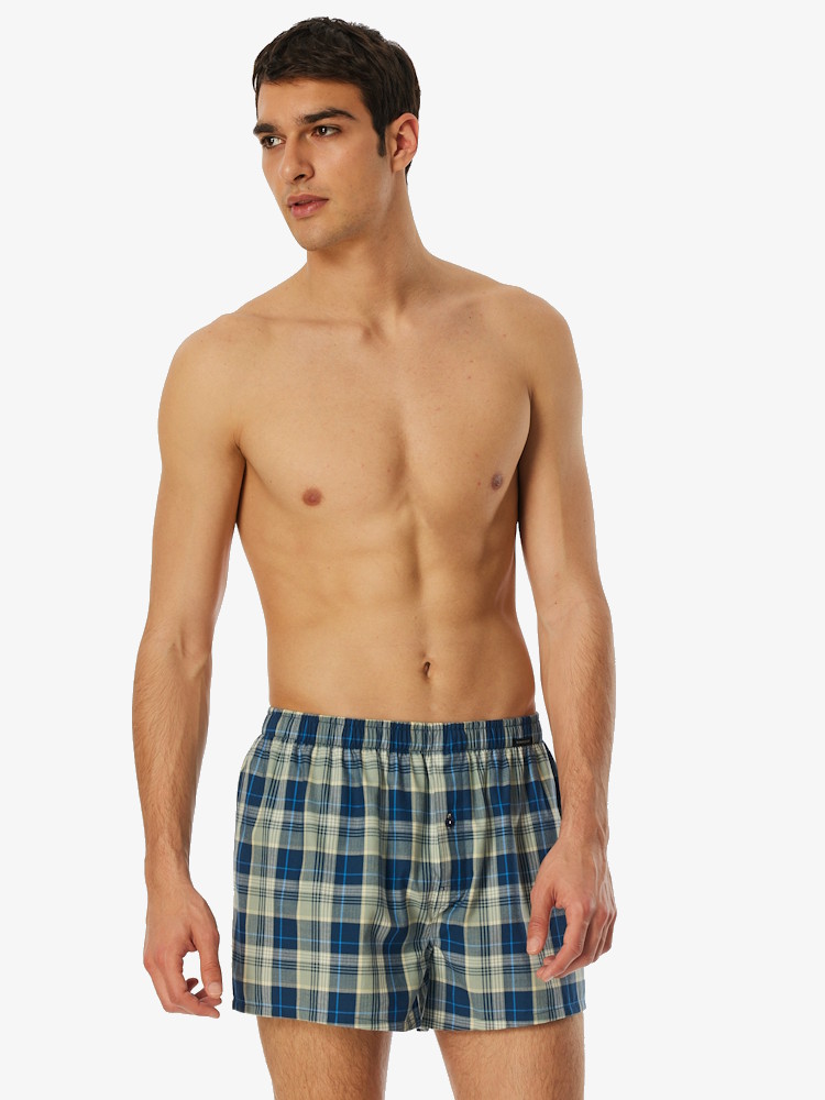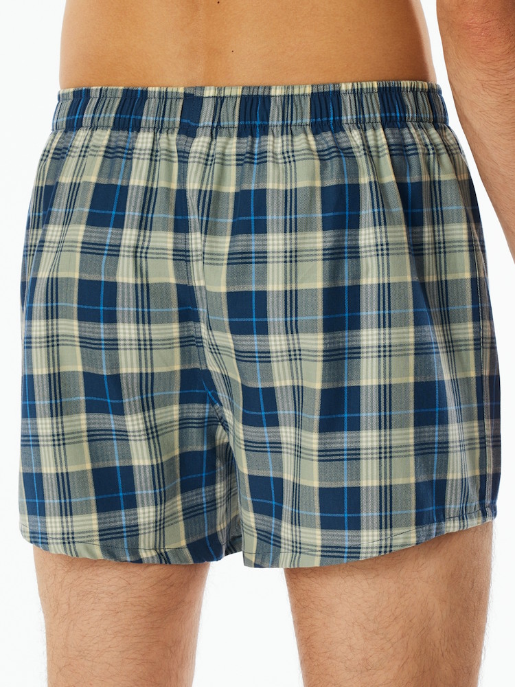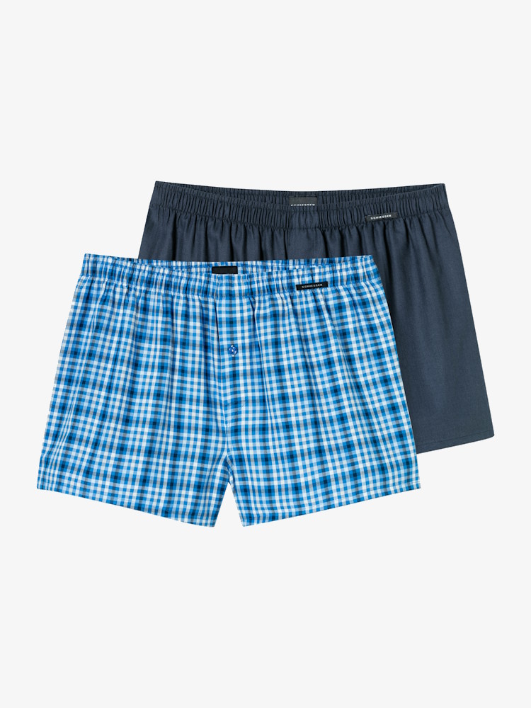 Schiesser Boxershorts 2 Pack 182428 set losse boxers met gulp met visgraatdessin en ruitdessin in petrol